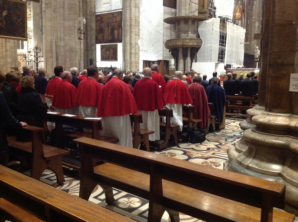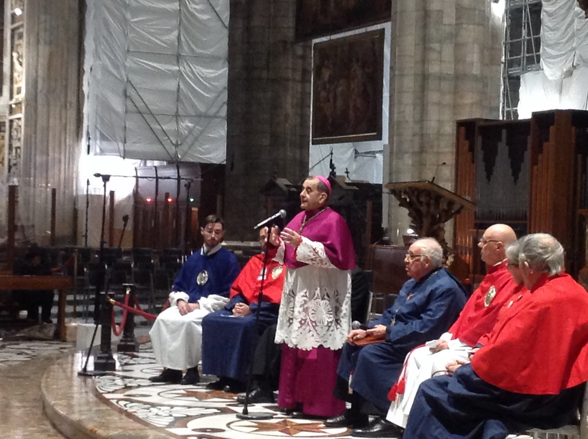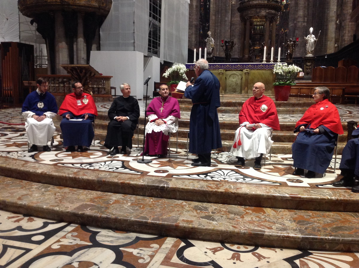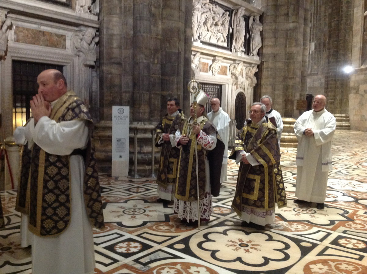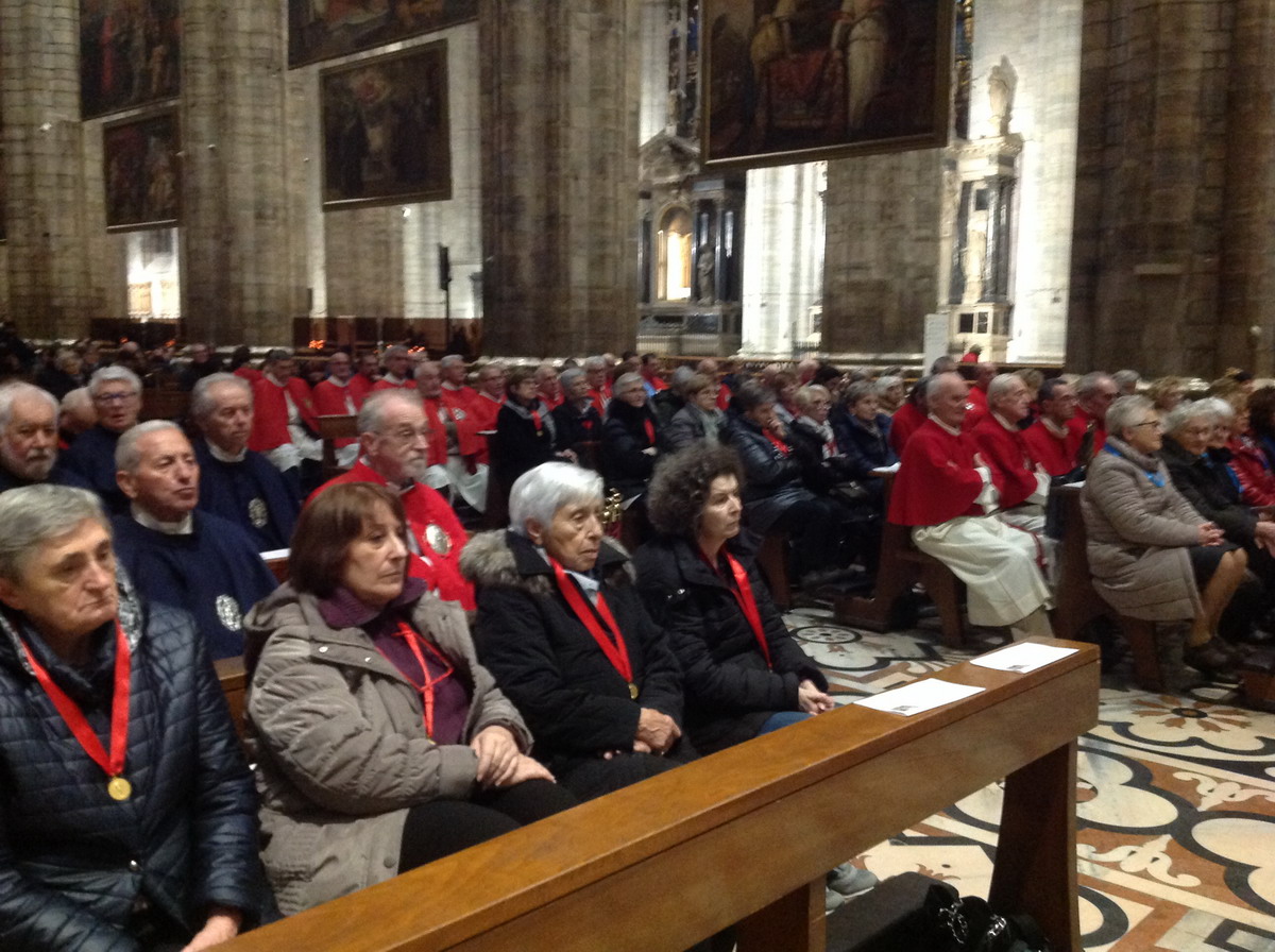 All’inizio della Messa, nel dialogo che la precede, porta il suo saluto l’assistente ecclesiastico delle Confraternite di Lombardia, don Claudio Carboni, che legge il messaggio inviato da monsignor Michele Pennisi, Arcivescovo di Monreale e assistente della Confederazione delle Confraternite delle Diocesi d’Italia: «Le Confraternite, che hanno avuto in San Carlo Borromeo un importante promotore, non sono il retaggio di un passato remoto, ma sono ancora una risorsa per la Chiesa e un’espressione genuina di pietà popolare». Vi si sperimenta, infatti, «la ricchezza di autentiche relazioni fraterne, ci si forma all’ascolto della Parola di Dio e al discernimento comunitario, si matura la capacità di testimoniare il Vangelo della carità nella società».