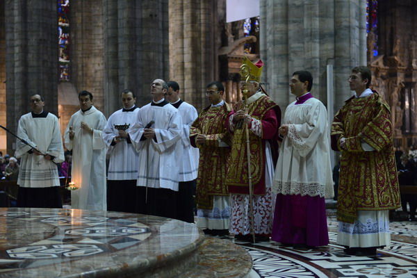 Si è aperta così la solenne Messa in coena Domini,celebrata in Duomo dall’Arcivescovo. La memoria dell’istituzione dell’Eucarestia – ha ricordato Scola nella sua omelia (in allegato nel box a sinistra) -, è il rito che «introduce ai misteri della Santa Pasqua». Una cena a cui Gesù ci invita di persona, come sottolinea il canto dopo il Vangelo intonato dal coro della voci bianche del Duomo: «Nemmeno la nostra fragilità e il nostro peccato – ha sottolineato il Cardinale – ci impediscono di partecipare. Per la misericordia di Dio, persino il nostro tradimento, nelle sue mille forme, non riesce a bloccarci».