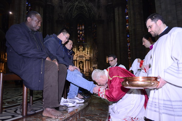 C’era gratitudine e orgoglio negli occhi dei dodici giovani, provenienti da diversi continenti, che sedevano questo pomeriggio sull’altare del Duomo (l’elenco nel box sotto a sinistra). Forse anche un pizzico di imbarazzo da adolescenti, nel momento in cui si sono slacciati le scarpe da tennis per permettere al cardinale Scola di ripetere il gesto di Gesù verso i discepoli nell’ultima cena.