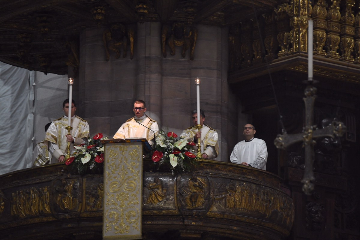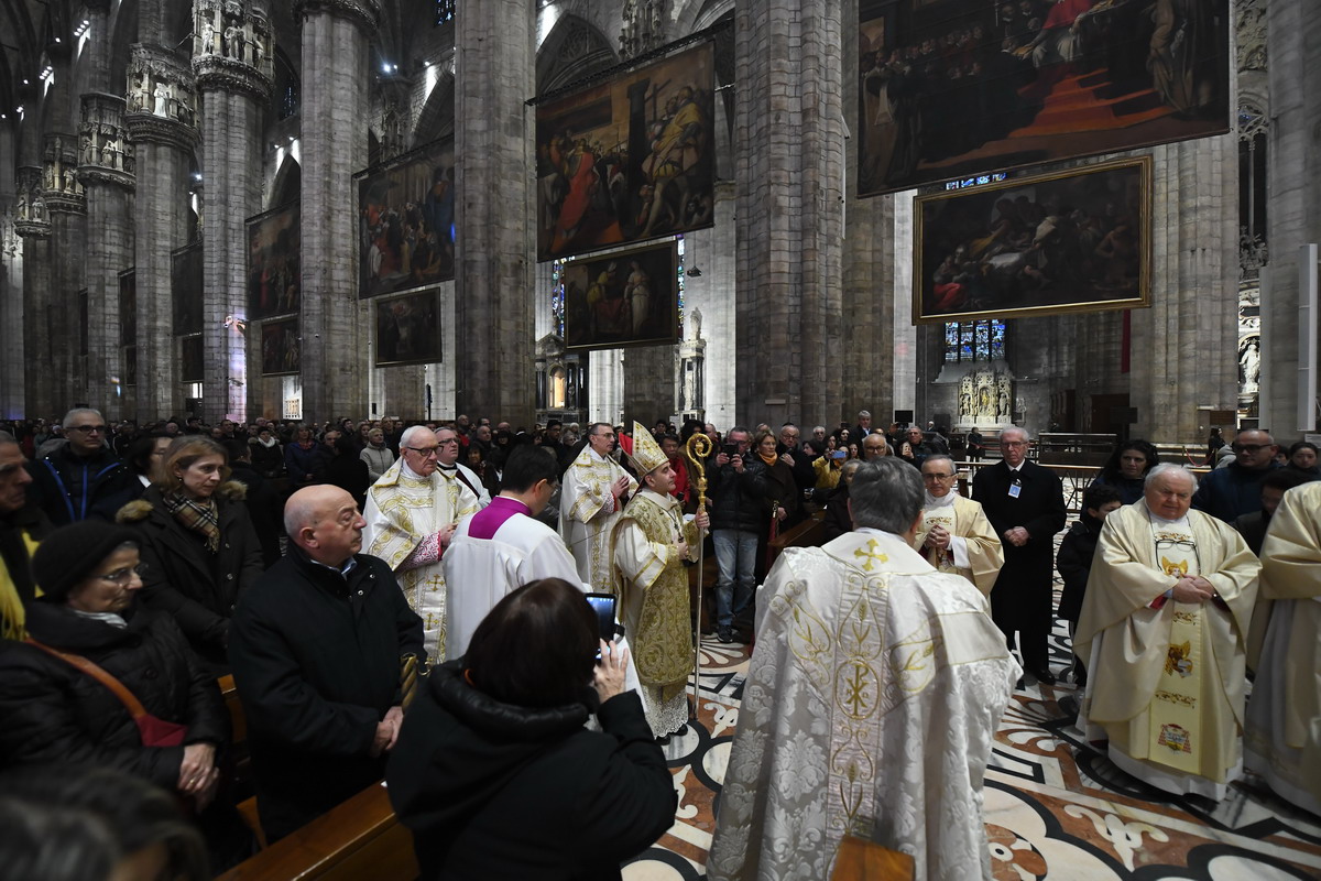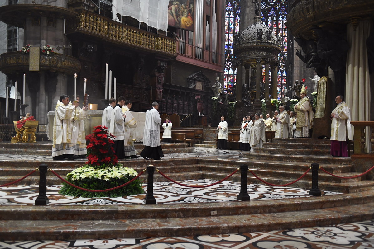 Concelebrata dai Canonici del Capitolo Metropolitano e da alcuni membri del Consiglio Episcopale Milanese, l’Eucaristia si apre sulle note universali dell’“Adeste Fideles” e con il canto dei 12 Kyrie peculiari delle Solennità ambrosiane.