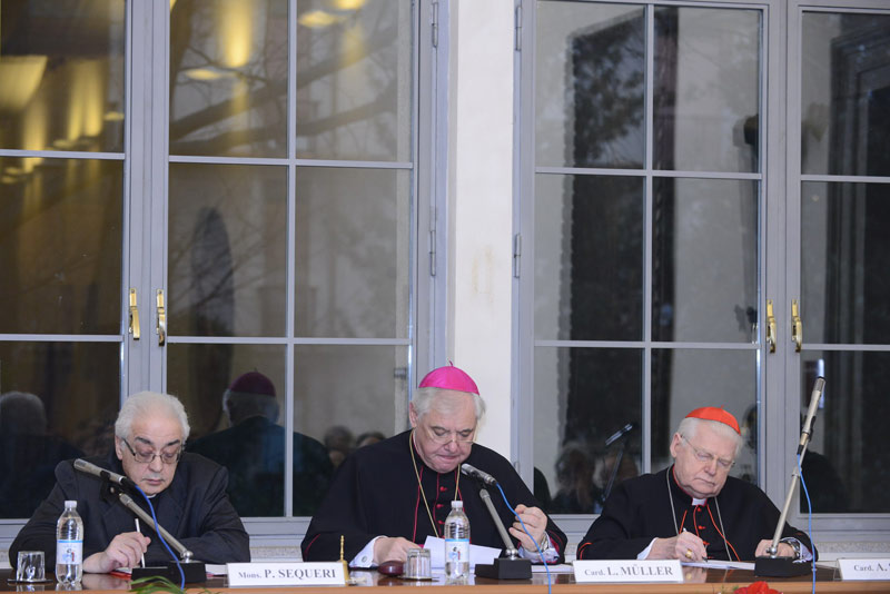 Poi, prende la parola, attesissimo dalle centinaia di docenti, studenti, sacerdoti e laici che si affollano, monsignor Gerhard Ludwig Müller, prefetto della Congregazione per la Dottrina della Fede, amico di lunga data dell’Arcivescovo e che verrà creato cardinale nel Concistoro della settimana prossima. La sua Lectio Magistralis affronta il tema relativo ad “Alcune sfide per la teologia nell’orizzonte della cittadinanza contemporanea”.
