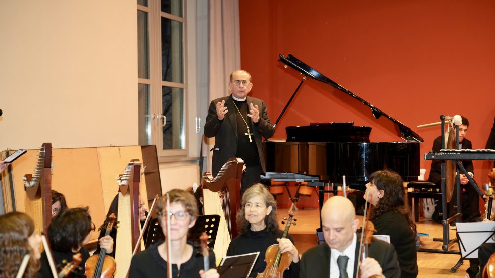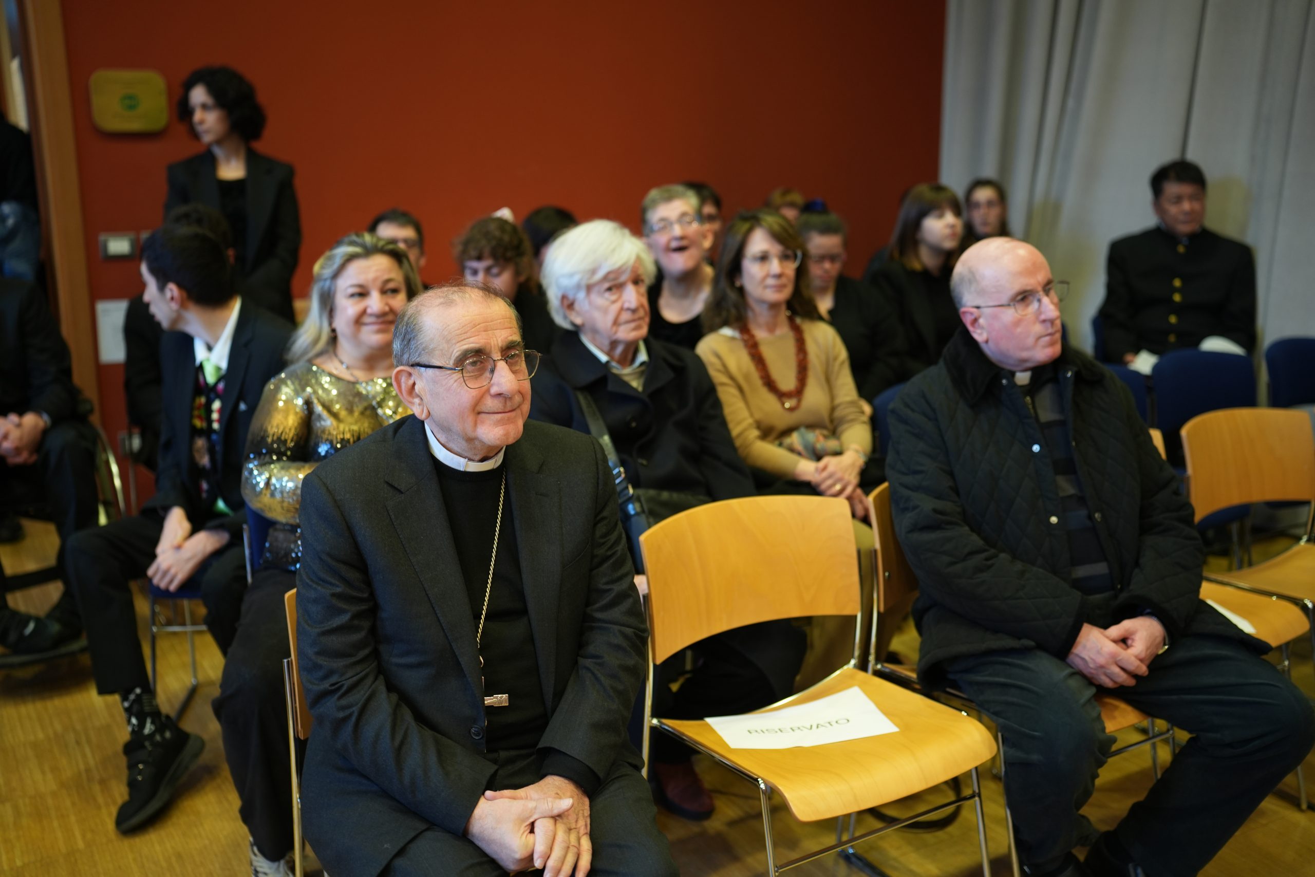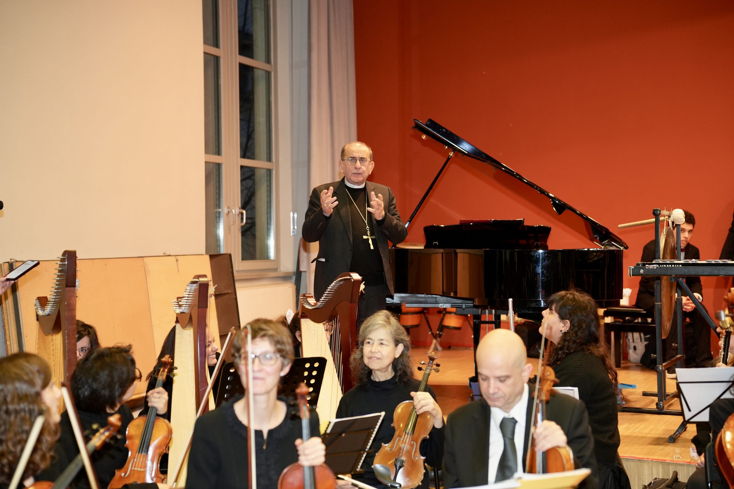 «Questa è la nostra famiglia, con i musicisti, gli educatori, le famiglie, i volontari – dice subito monsignor Pierangelo Sequeri -. Siamo passati di parrocchia in parrocchia, abbiamo iniziato in un sottoscala, ora siamo qui in una magnifica sede. Siamo una cosa bella che rallegra la società civile perché inventiamo cose per trovare spazi di vita laddove sembrava che ve ne fossero pochi: una sfida che, con impegno e buona volontà, può essere vinta».