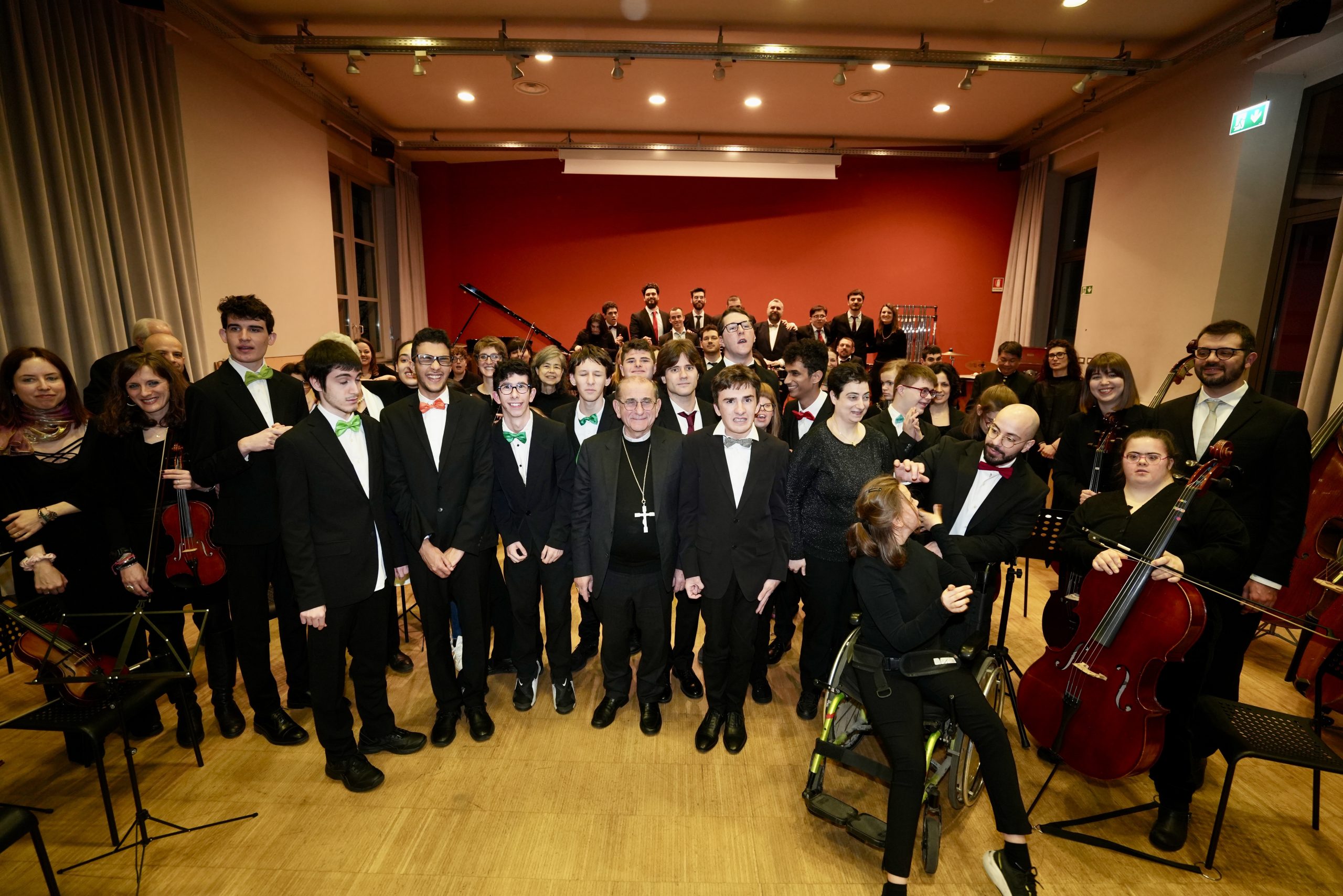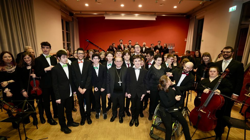 Dopo il concerto delle due Orchestre sinfoniche, con i fondatori Pierangelo Sequeri e Licia Sbattella visita alla Fondazione che da 40 anni opera per l’inclusione attraverso la musica di bambini e giovani con autismo e disagio psichico e mentale