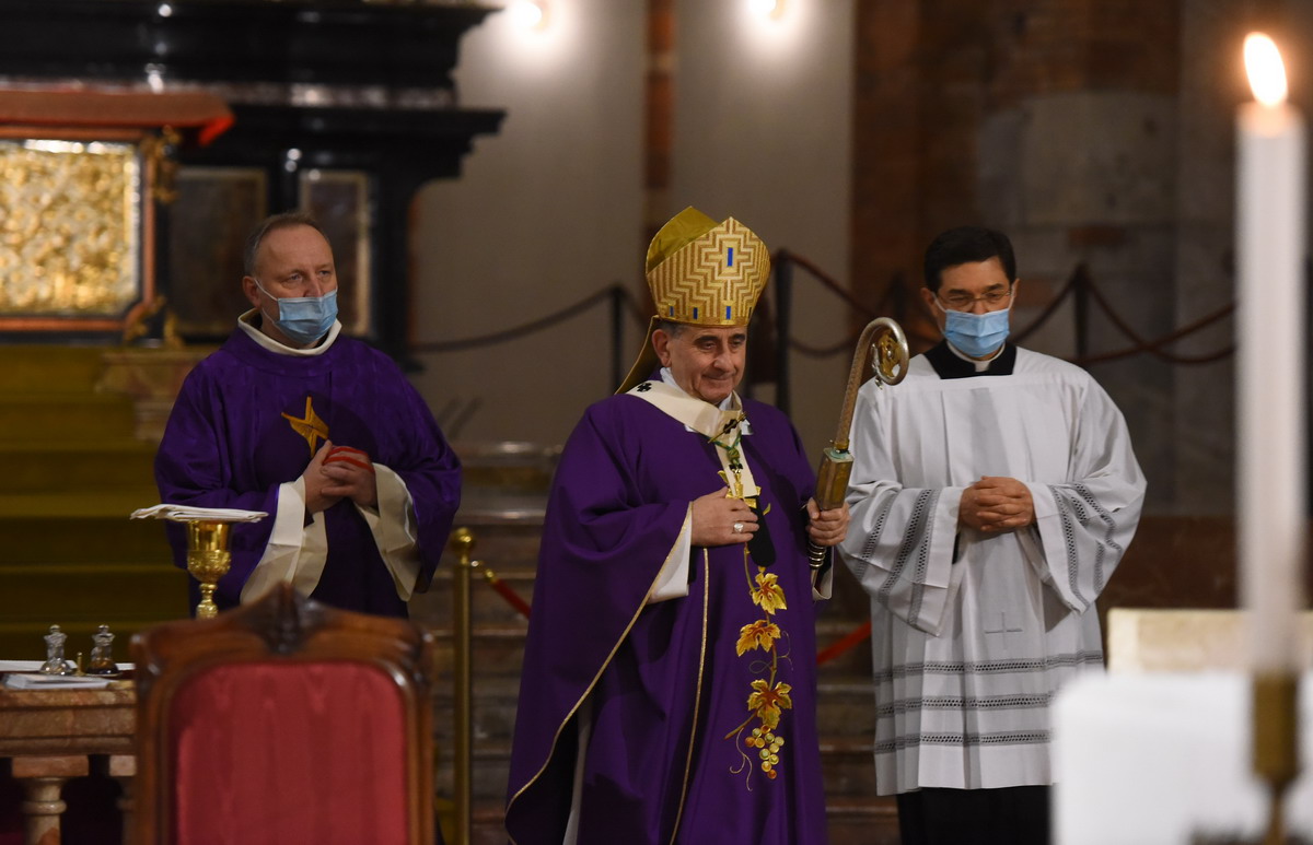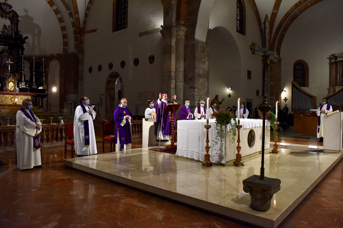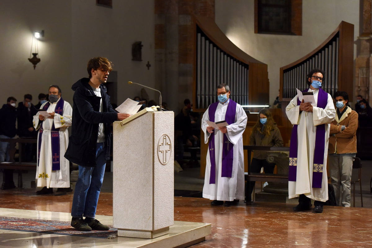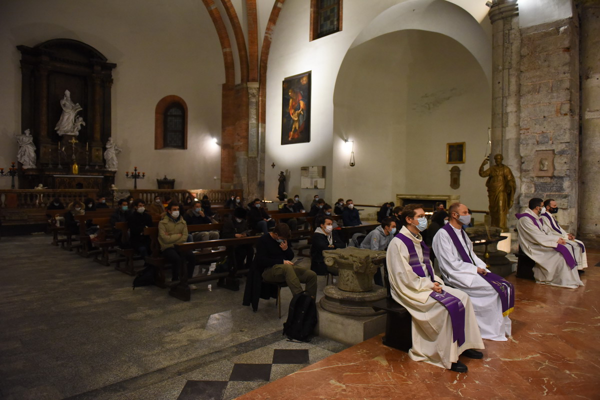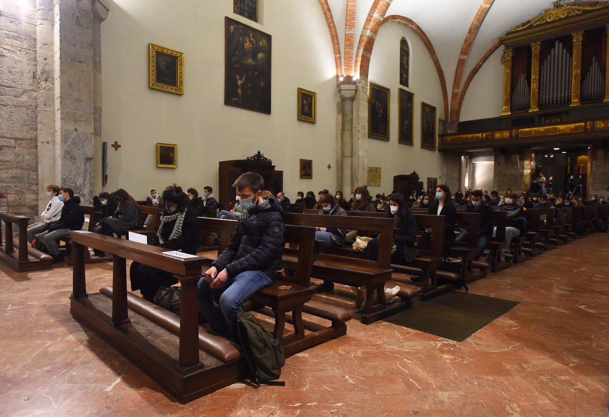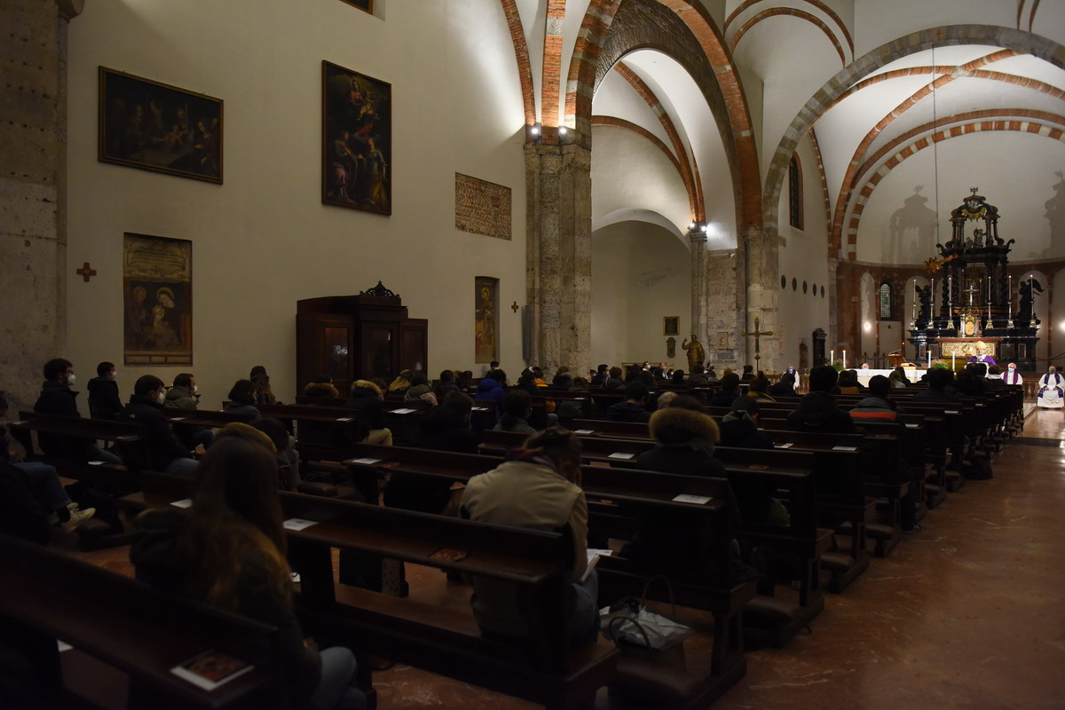 Arrivano in gruppi, parlano, si salutano sul sagrato e sanno che avrebbero potuto essere molti di più se le regole di sicurezza imposte dalla pandemia, non ne avessero limitato il numero. Come ogni anno, la tradizionale Messa prenatalizia presieduta dall’Arcivescovo nella basilica dei Santi Apostoli e Nazaro Maggiore e dedicata agli universitari di Milano è, infatti, un momento atteso di preghiera, riflessione e aggregazione. E così è anche in questo 2020, tanto difficile e diverso che, tuttavia, non ha spento l’entusiasmo dei giovani e la loro tensione nella fede. Lo nota, nel suo saluto di benvenuto, don Marco Cianci, responsabile della Sezione Università che concelebra unitamente a oltre altri 10 sacerdoti, tra cui i responsabili del Servizio per i Giovani e l’Università, don Marco Fusi, del Servizio per l’Oratorio e lo Sport, don Stefano Guidi, e i cappellani di diversi Atenei.
