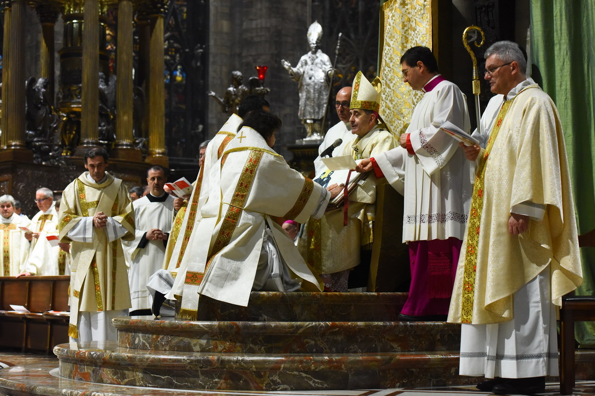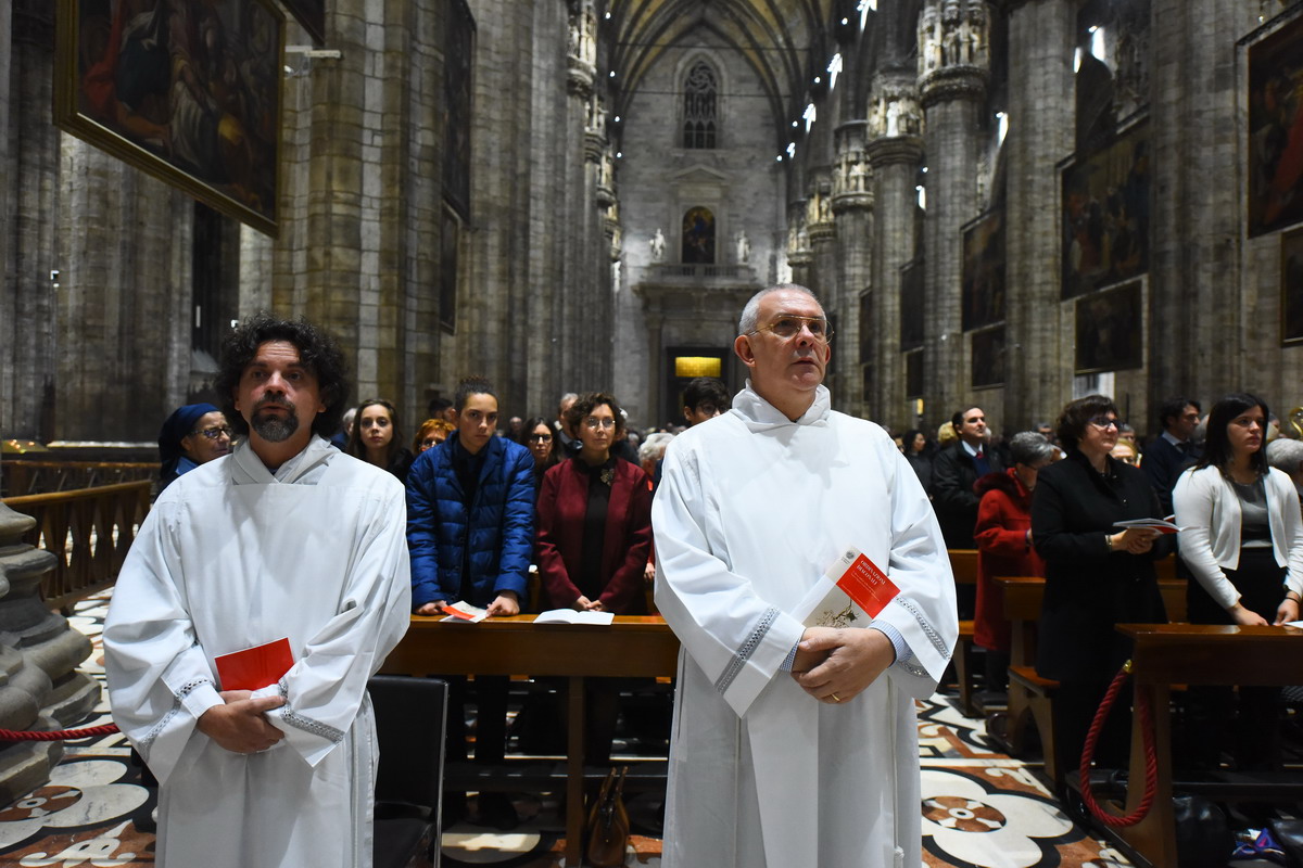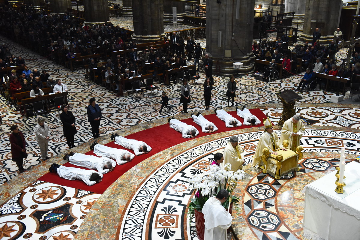 Il malfattore appeso alla croce, accanto al Signore Gesù, che fa emergere tutta la sua rabbia e l’altro crocifisso che, anche lui, ha una parola da dire: che la storia è ingiusta, l’innocente è condannato come il malfattore, il giusto muore come l’ingiusto, ma la morte di Gesù è una porta che si apre sul paradiso. È da lui che bisogna imparare. A dirlo, a ripeterlo, perché nessuno lo dimentichi, è l’Arcivescovo, che in Duomo presiede la Celebrazione vigiliare nella Solennità di Cristo Re dell’Universo, con il Rito di Ordinazione dei nuovi Diaconi permanenti. 8 uomini di età compresa tra i 43 e i 57 anni, 7 dei quali sposati con figli, che dopo sei anni di preparazione, si aggiungono ai 144 già impegnati nelle realtà della Chiesa ambrosiana.