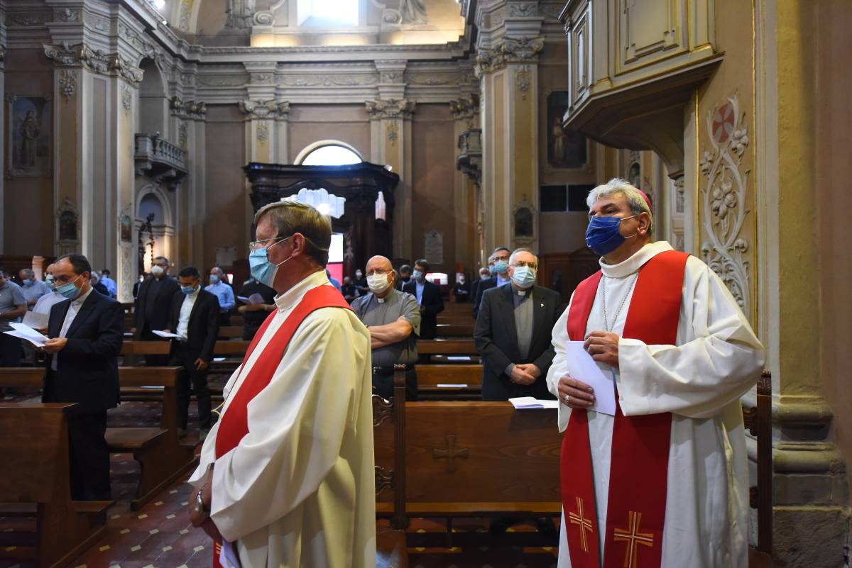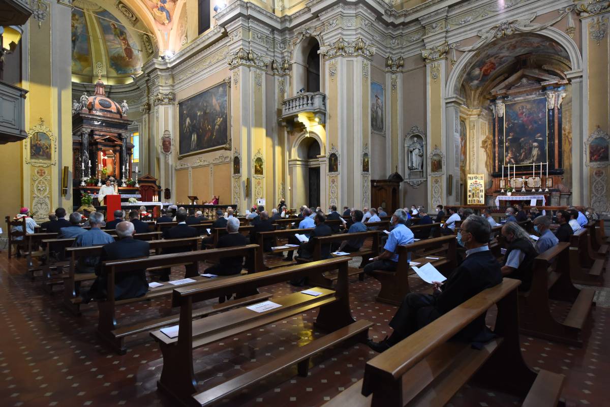 E, ancora, «dobbiamo fare tante cose, ma il motivo per cui le facciamo sono l’obbedienza, la sequela di Gesù e la gioia di essere suoi amici. Come so, alcuni trasferimenti e distacchi sono motivo di tristezza, alcune comunità di approdo non sono così affascinanti come ci si aspetterebbe: sono le cose della vita, ma la nostra gioia viene dal fatto che Gesù riempie la nostra vita come le anfore di Cana. Solo la fede ci garantisce la gioia in ogni situazione. Siamo qui, in questo Santuario, dove un uomo – Pietro  da Verona – ha scritto con il suo sangue la professione di fede: credo che Gesù è il mio Signore, che mi basta e che è più irrinunciabile della vita stessa. Per questo chiedo per tutto il Clero e il popolo di Dio il dono della gioia, ma lo raccomando specie ai preti»