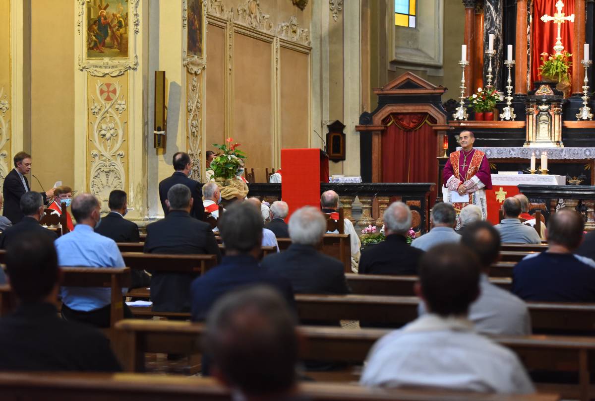 Infine, la Professione di fede, il giuramento di fedeltà nell’assumere il nuovo Ufficio da esercitare a nome della Chiesa (solo per i parroci o responsabili di Cp), ponendo le mani sul Libro dei Vangeli, la lettura da parte dell’Arcivescovo del Decreto di immissione in possesso – a norma del canone 527 -, la preghiera universale, la benedizione e il canto corale della Salve Regina.