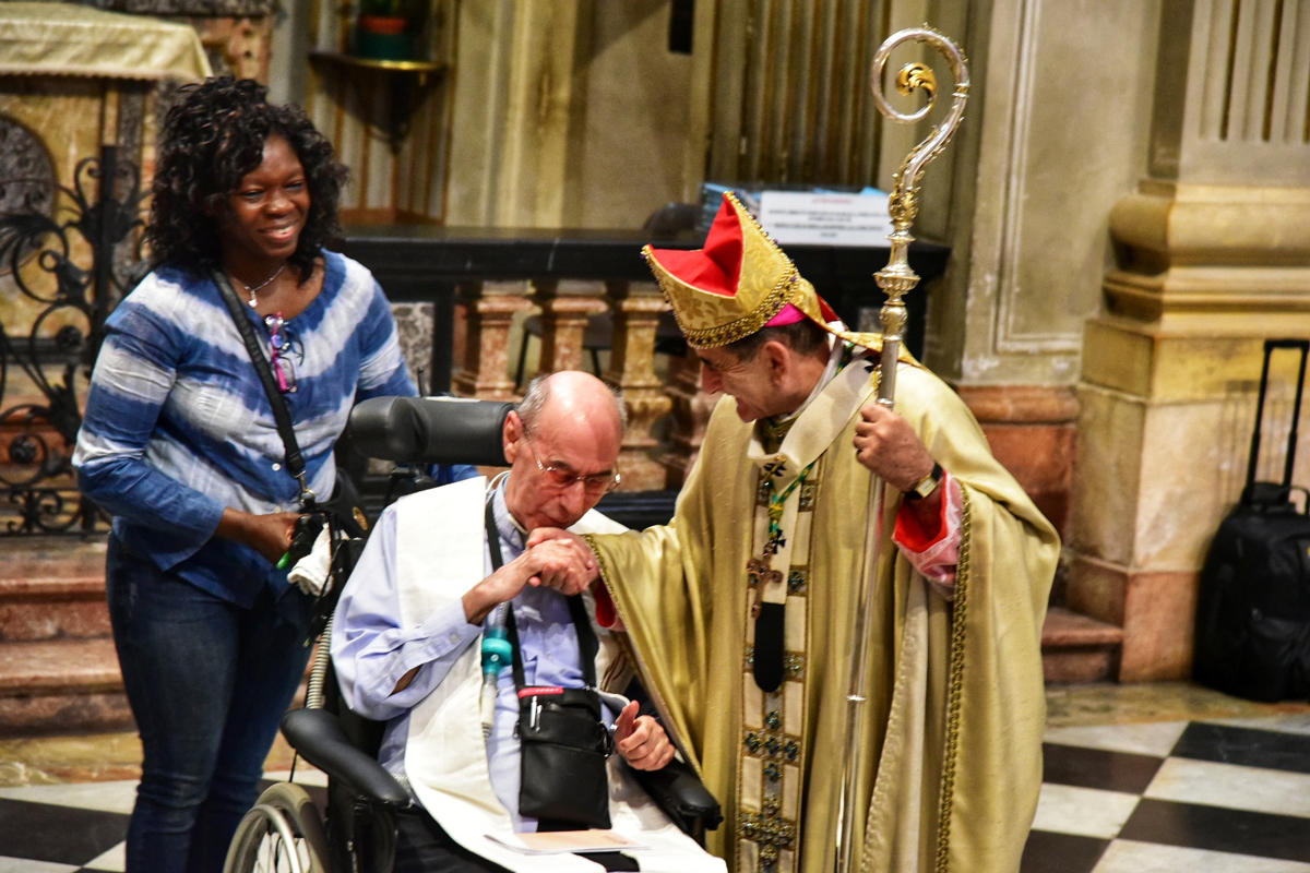 Alla fine della Messa prende brevemente la parola monsignor Roberto Busti, assistente ecclesiastico dell’Unitalsi Lombarda, che sottolinea «il momento di incontro e di gioia» vissuto dal e con i sacerdoti anziani e sofferenti, ai quali viene donato il volume di Vittore De Carli, presidente dell’Unitalsi regionale, “Dal buio alla luce”, nel quale l’autore racconta la sua malattia e i 47 giorni di coma.