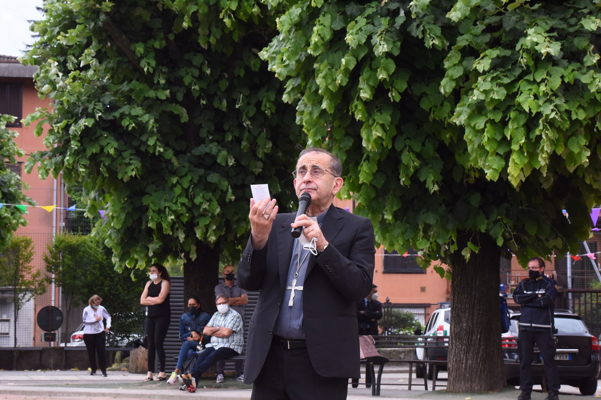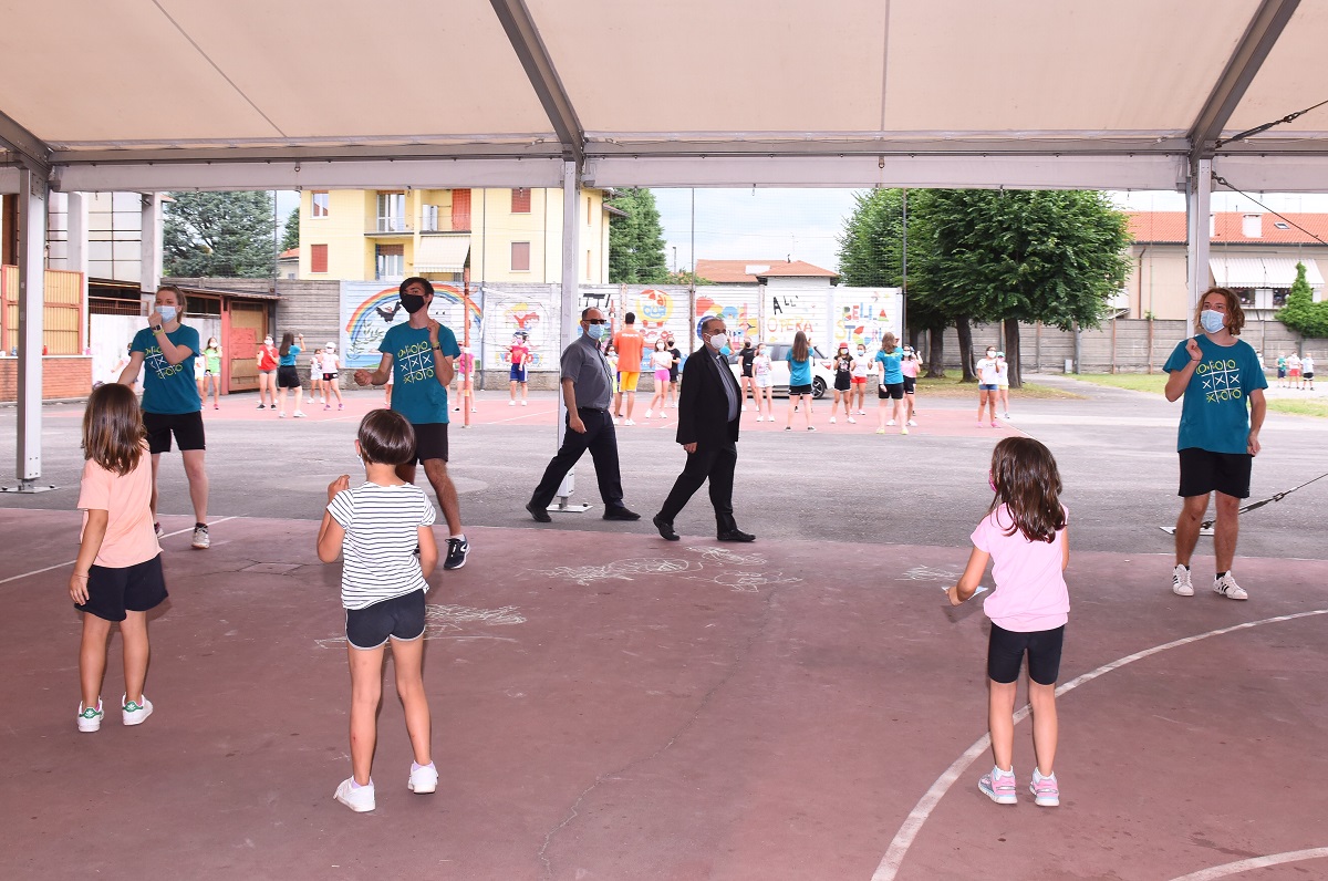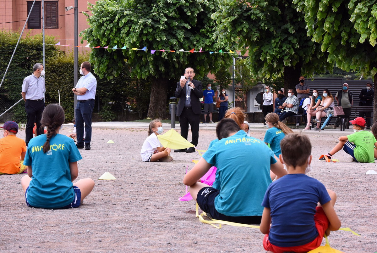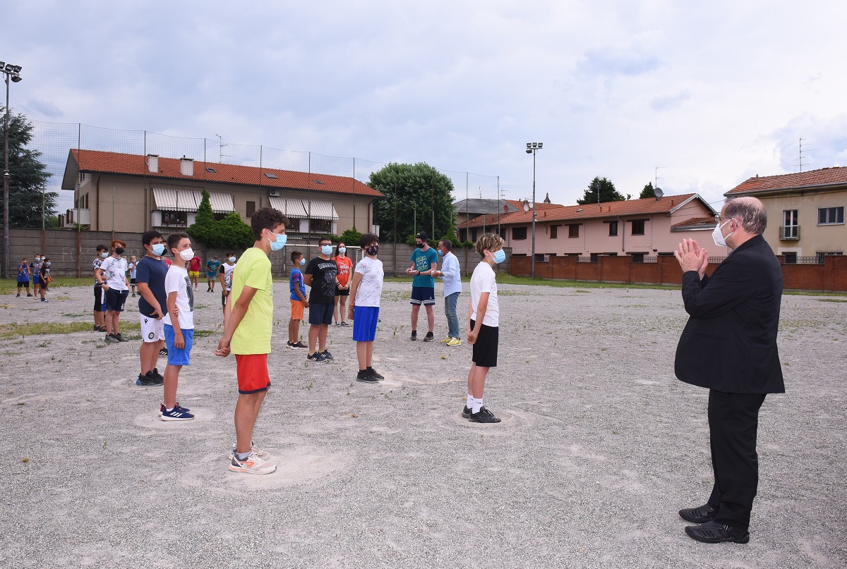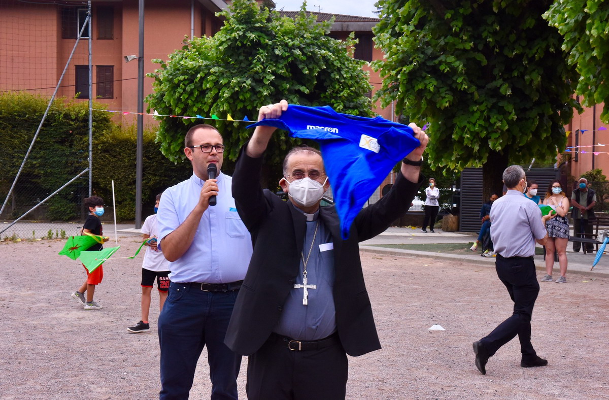 Una giornata intensa trascorsa tra i ragazzi, gli educatori e gli animatori degli oratori estivi di diverse realtà nella zona di Varese, da Cairate ad Azzate, per arrivare nel capoluogo con Masnago e Avigno. In questo oratorio l’Arcivescovo, accompagnato dal direttore della Fom don Stefano Guidi e accolto dal parroco don Giampietro Corbetta e dal vicario parrocchiale don Matteo Moda, ha brevemente sostato dialogando con oltre un centinaio di bimbi e ragazzi della Comunità pastorale Maria Madre Immacolata. Un aquilone, «per volare alti», una pietra per indicare «la bellezza di essere pietre vive della Chiesa» e la maglia della società sportiva “Orma” vengono donati all’Arcivescovo che, a sua volta, lascia l’immaginetta «che rappresenta un grande cielo azzurro che colora di azzurro anche le montagne e che dice che la terra è piena della gloria di Dio e dell’amore che rende capaci di amare». «Quando ci sono persone che si lamentano ricordatevi che tutti siamo capaci di amare», conclude l’Arcivescovo raccomandando ai ragazzini di Masnago, Avigno e Velate, la “preghiera del giovedì”: «Non sottovalutarti mai, e non dimenticare mai la tua vocazione a essere felice».