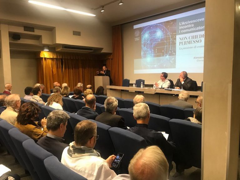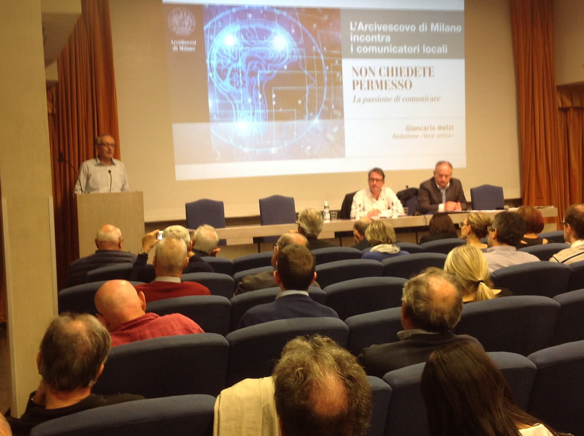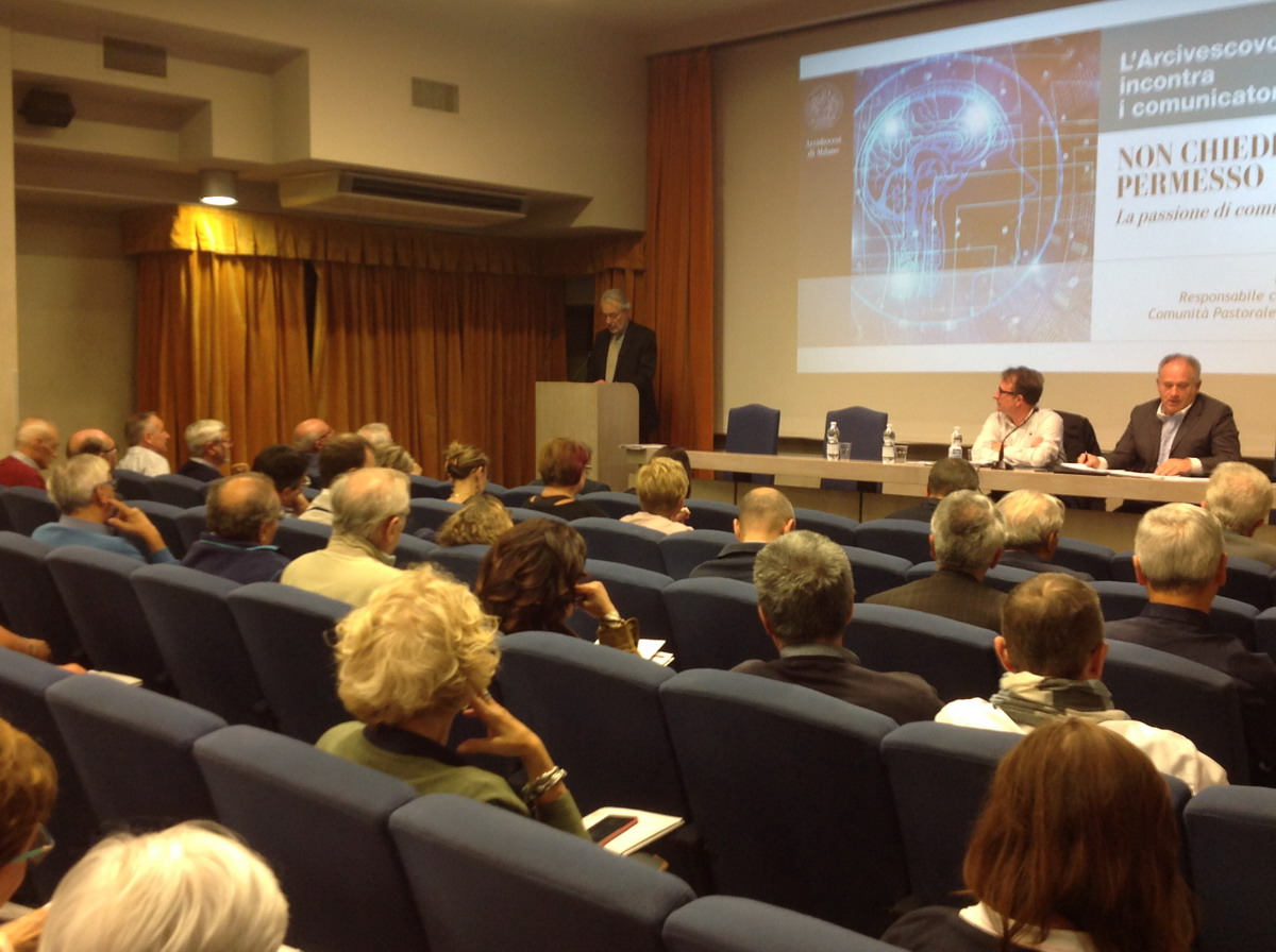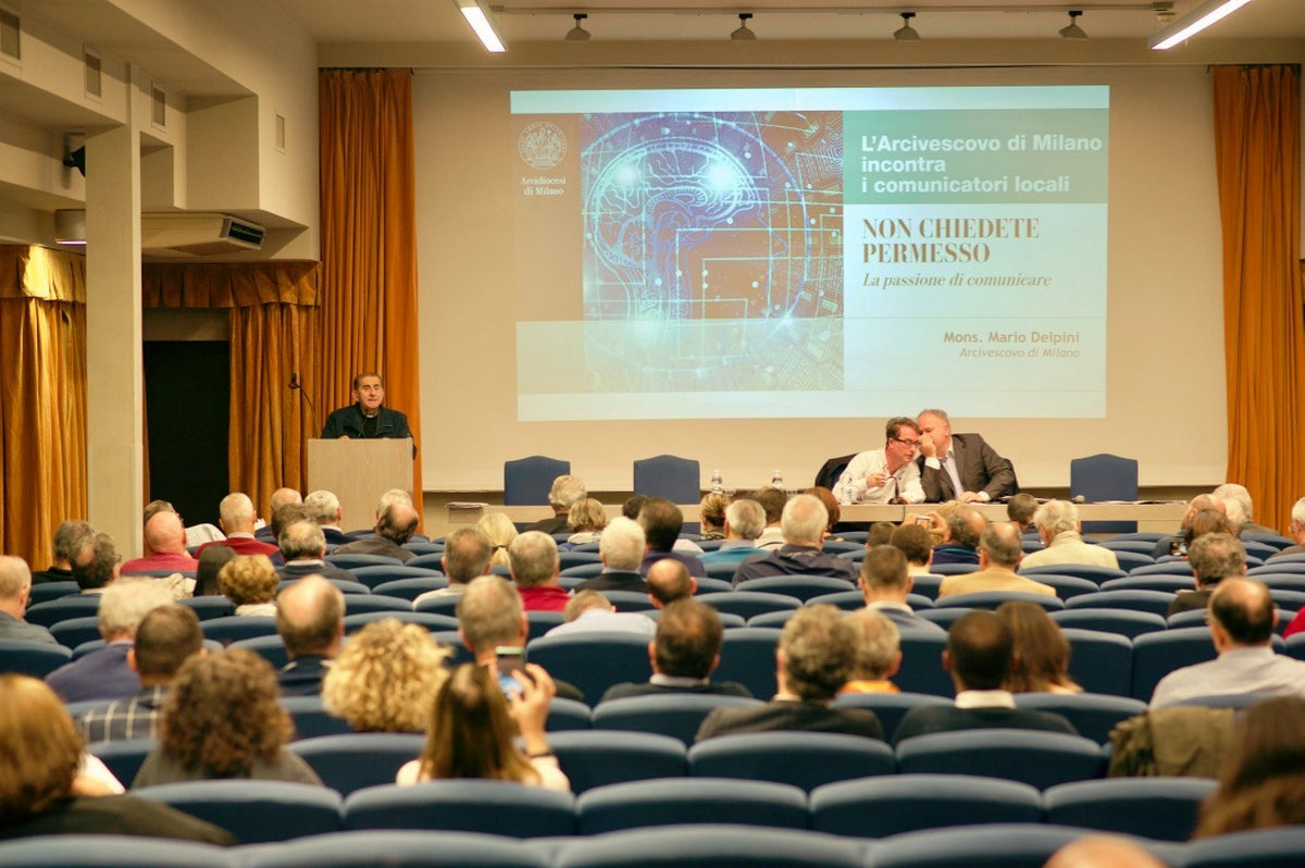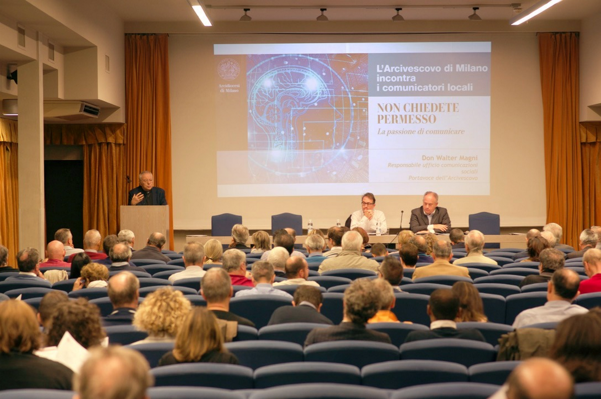 Il “grazie” che don Walter Magni, responsabile dell’Ufficio delle Comunicazioni Sociali dell’Arcidiocesi e portavoce dell’Arcivescovo, scandisce all’inizio dell’incontro, “Non chiedete il permesso….- La passione di comunicare”, dedicato ai comunicatori locali, è la cifra per comprendere la logica della mattinata che si svolge, con oltre 100 partecipanti provenienti da ogni Zona della Chiesa ambrosiana, presso l’Auditorium San Carlo nel cuore di Milano. Convocazione a cui il vescovo Mario «in ascolto», per usare un’espressione di don Magni, assiste per l’intera mattinata.