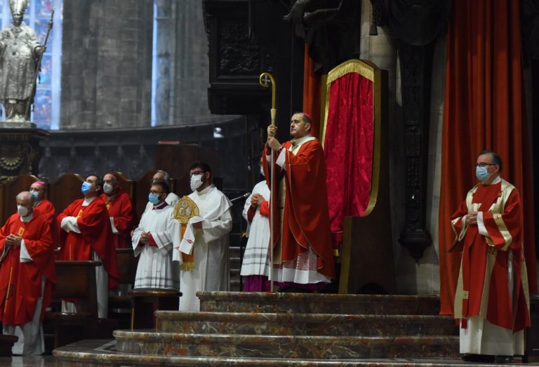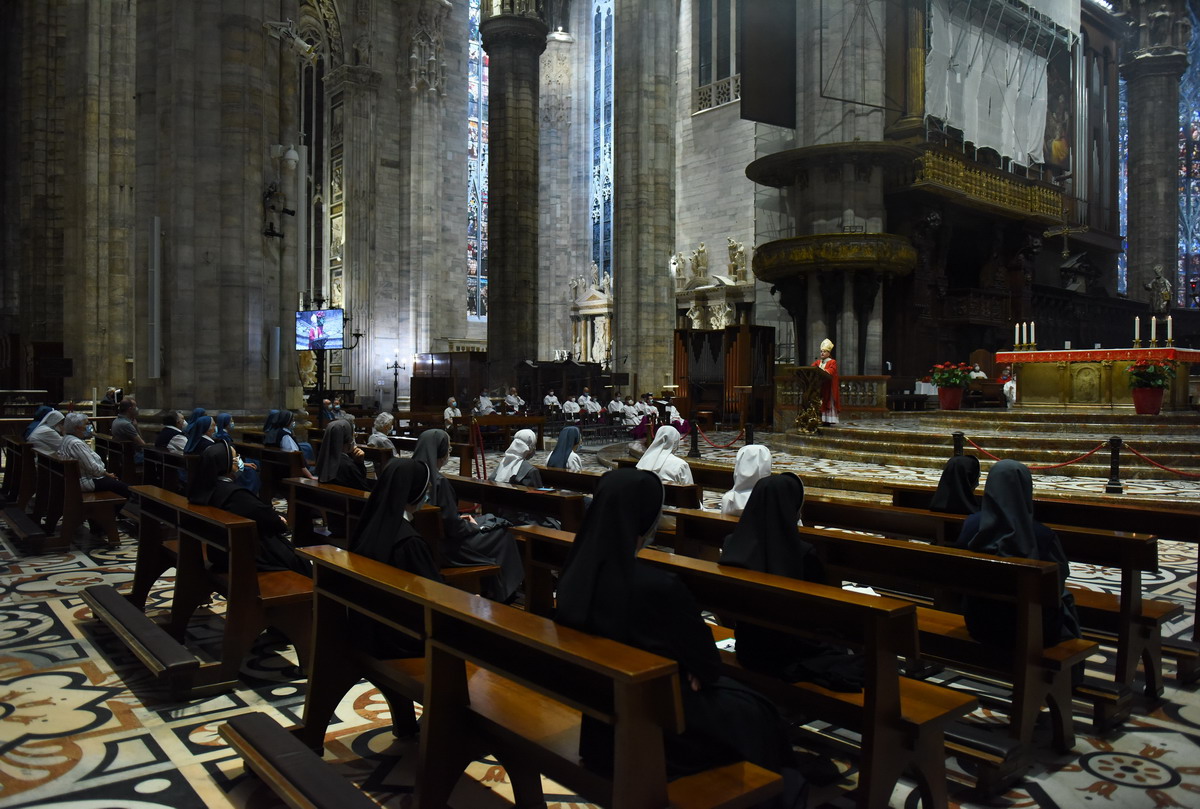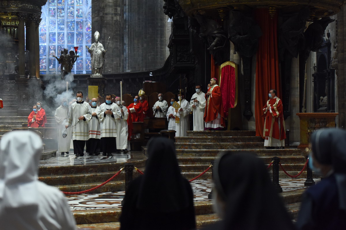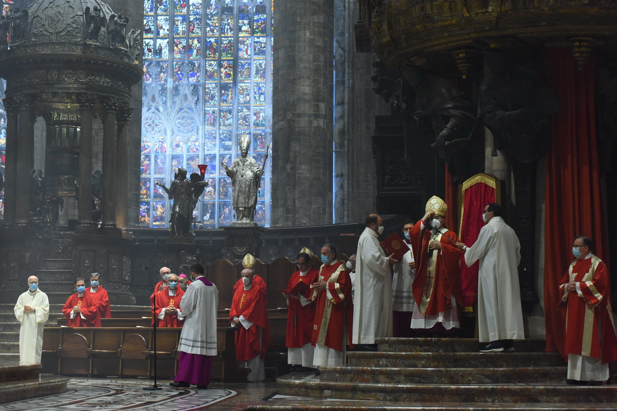 In Duomo si celebra, presieduta dall’Arcivescovo nella vigilia della Solennità del Sacro Cuore di Gesù, la Messa per ricordare i sacerdoti, consacrati e consacrate, diaconi defunti nel corso dell’anno. E così, all’inizio del Rito, concelebrato da 6 vescovi ausiliari, altri membri del Cem, canonici del Capitolo metropolitano, diversi preti, il Moderator Curiae, monsignor Bruno Marinoni, legge, appunto, i nomi di 62 tra presbiteri, religiosi e diaconi – da monsignor Marco Ferrari, vescovo ausiliare – e delle Congregazioni di appartenenza, 13 maschili e 14 femminili, di consacrati e consacrate. «Ricordiamo con commozione, gratitudine e spirito di fede tutti questi fratelli e sorelle che ci hanno preceduto nella gioia di Dio. La fede nella risurrezione è il nostro vero conforto, la certezza della comunione dei santi è il nostro sguardo più realistico sulla vita, sulla morte, sulla santità e sul peccato. Ringraziamo il Signore per tutto il bene da loro ricevuto», dice l’Arcivescovo con parole che tornano nell’omelia.