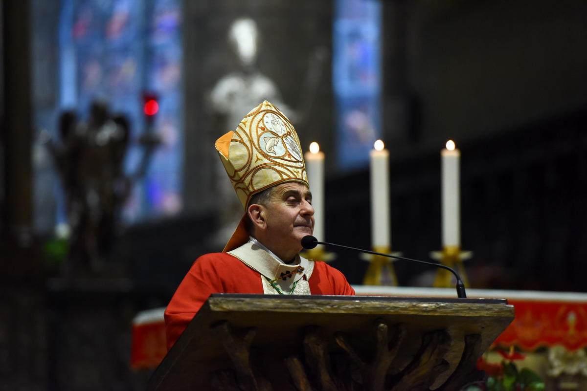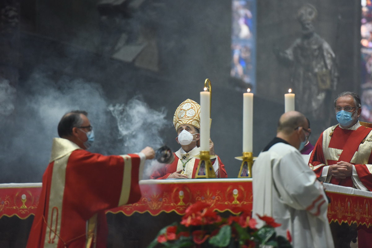 Da qui, la conclusione: «Così piego le ginocchia davanti al Padre che sta nei cieli, perché mi conceda di comprendere la profondità del mistero che è stato annunciato a tutti i popoli. Le nostre comunità, come ci hanno ricordato i nomi, hanno celebrato molti funerali: secondo la mentalità del mondo, la morte è un congedo definitivo, i morti finiscono nel nulla, ma noi che abbiamo visto in Gesù il cuore trafitto, sentiamo questi fratelli e sorelle come partecipi della gloria di Cristo e chiediamo la grazia di imparare a vedere. Molti dicono che questo nostro tempo è buio, il futuro oscuro, la vita minacciata; molti sembra che ci invitino a guardare a Gesù come a uno dei 3 delinquenti sacrificati dal potere, ma noi, tra questi 3 crocifissi, riconosciamo che c’è il figlio dell’uomo che si è abbassato fino alla condizione di morte rivelare la gloria di Dio. Noi tutti abbiamo visto e sentiamo la responsabilità di dare testimonianza».
