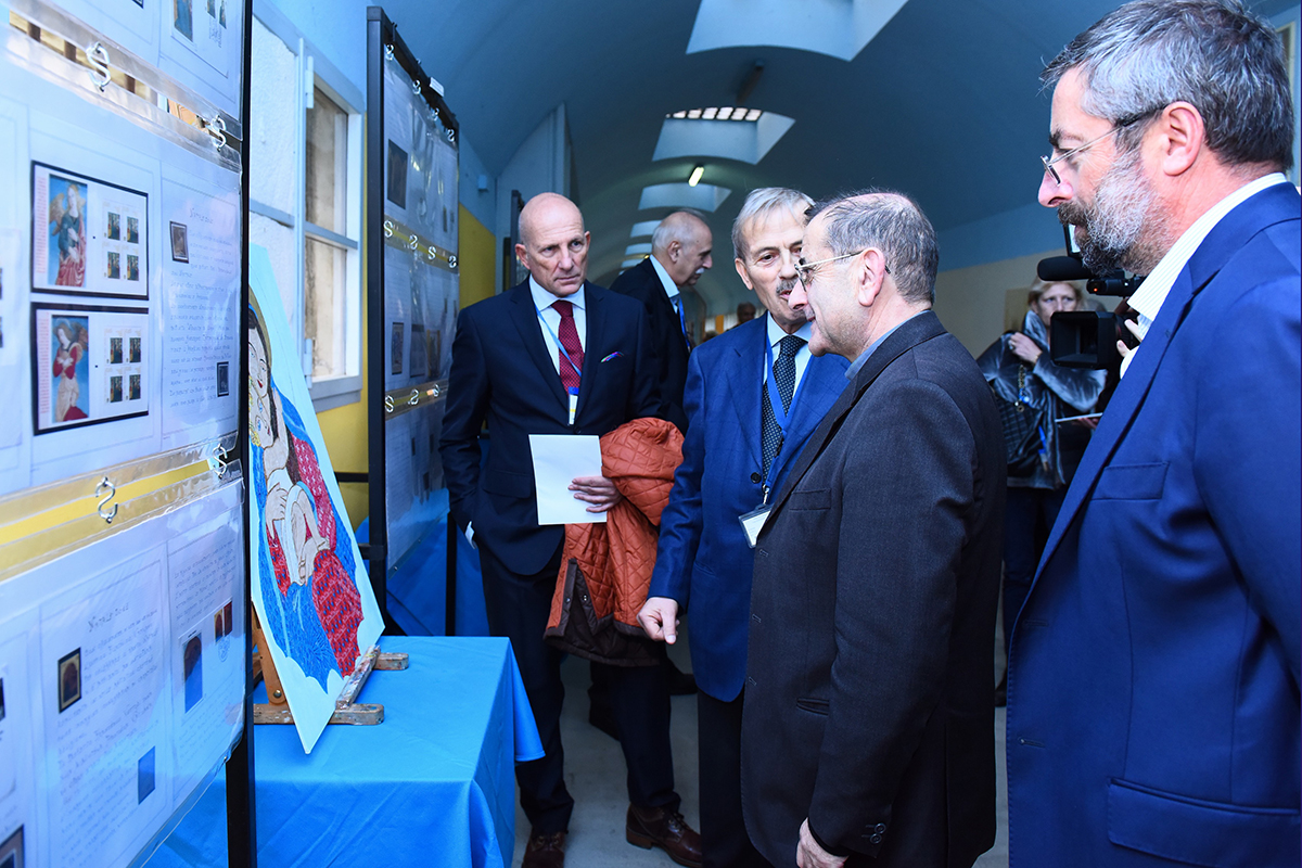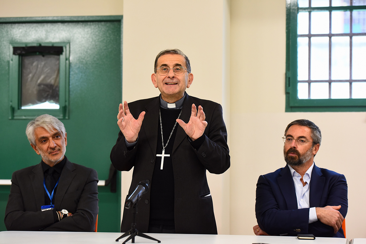 L’Arcivescovo, da parte sua, ringrazia della cordiale accoglienza. «Sono veramente contento di questa attività e di quelle come il Laboratorio di Scrittura Creativa e di Fotografia che, qui, già conosco. Forse tutto questo autorizza a cambiare una certa immaginazione sul carcere che si coltiva, magari, per inerzia. Siamo qui per rendere omaggio alla capacità artistica che si produce là dove c’è l’artista. Quindi, l’arte supera il “dentro” e il “fuori”. È un invito ad elevarsi a livello della contemplazione della bellezza e della capacità comunicativa che riabilita», prosegue il vescovo Mario che racconta di avere, da giovane, coltivato il gusto dei francobolli «quasi come fosse una sorta di esplorazione del mondo. Con i francobolli e le loro immagini si può costruire una specie di geografia e di zoologia. Noi ragazzi che non avevamo internet, avevamo il mondo in casa con i francobolli».