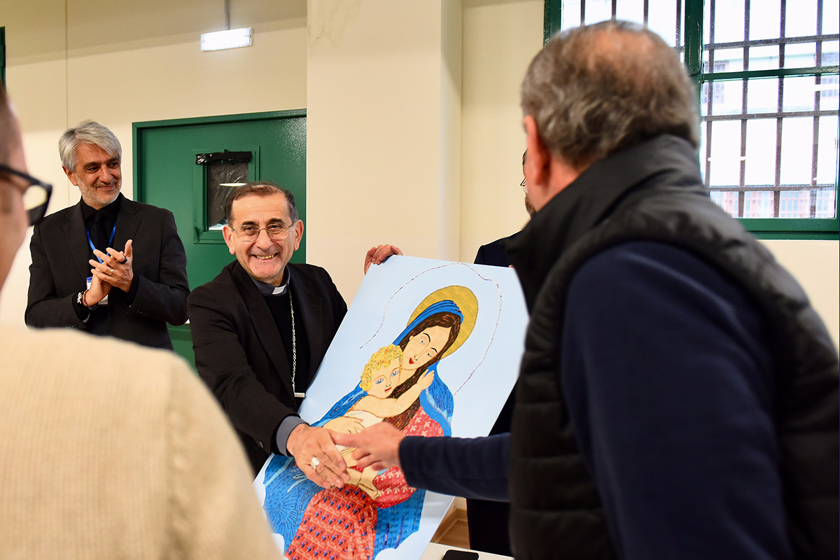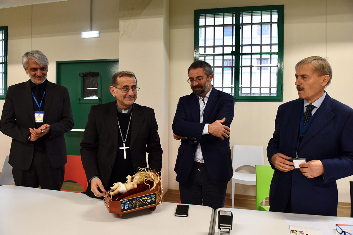 Insomma, i francobolli che, in tutti, i sensi superano le frontiere, anche delle sbarre, rendendo più bello il mondo e la vita dei reclusi, come quella di Antonio e Corrado che, in conclusione, donano all’Arcivescovo rispettivamente un mosaico fatto di francobolli e una culla per Gesù Bambino.