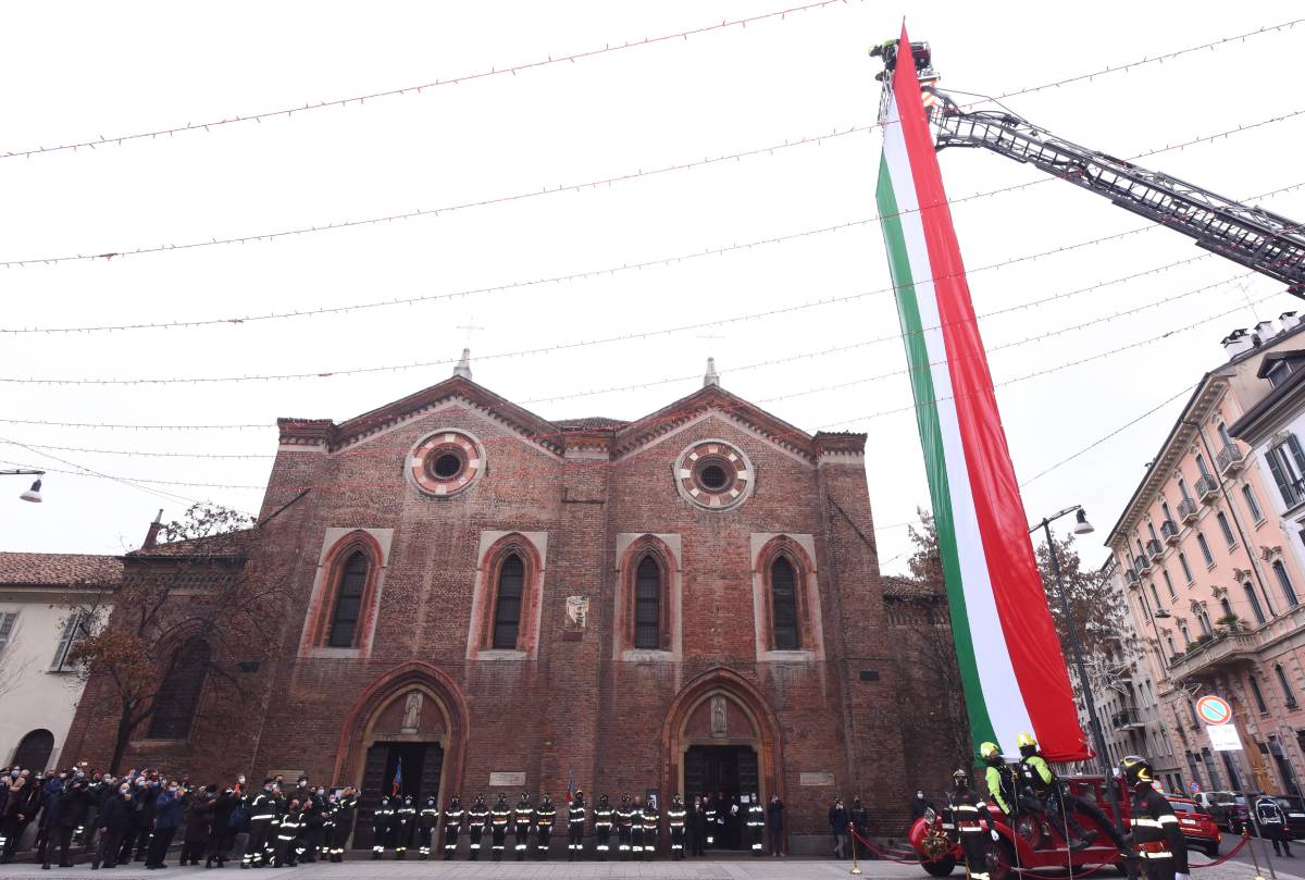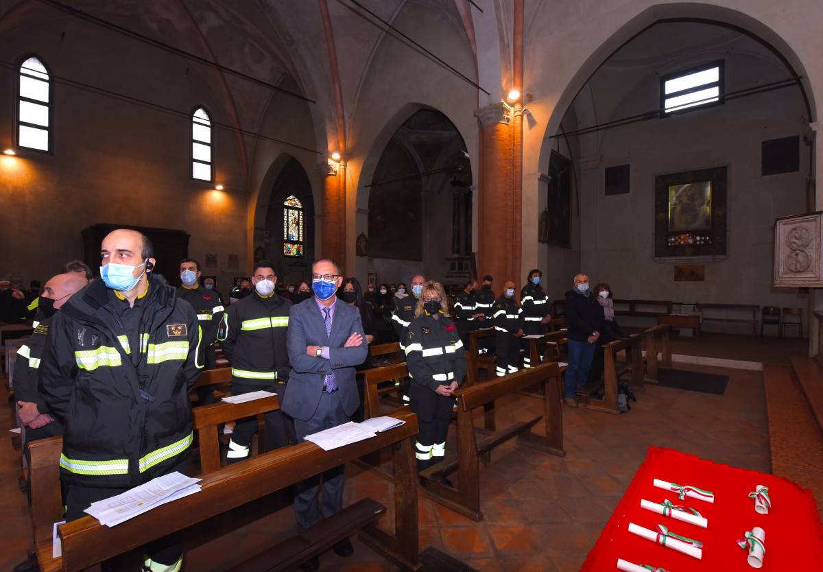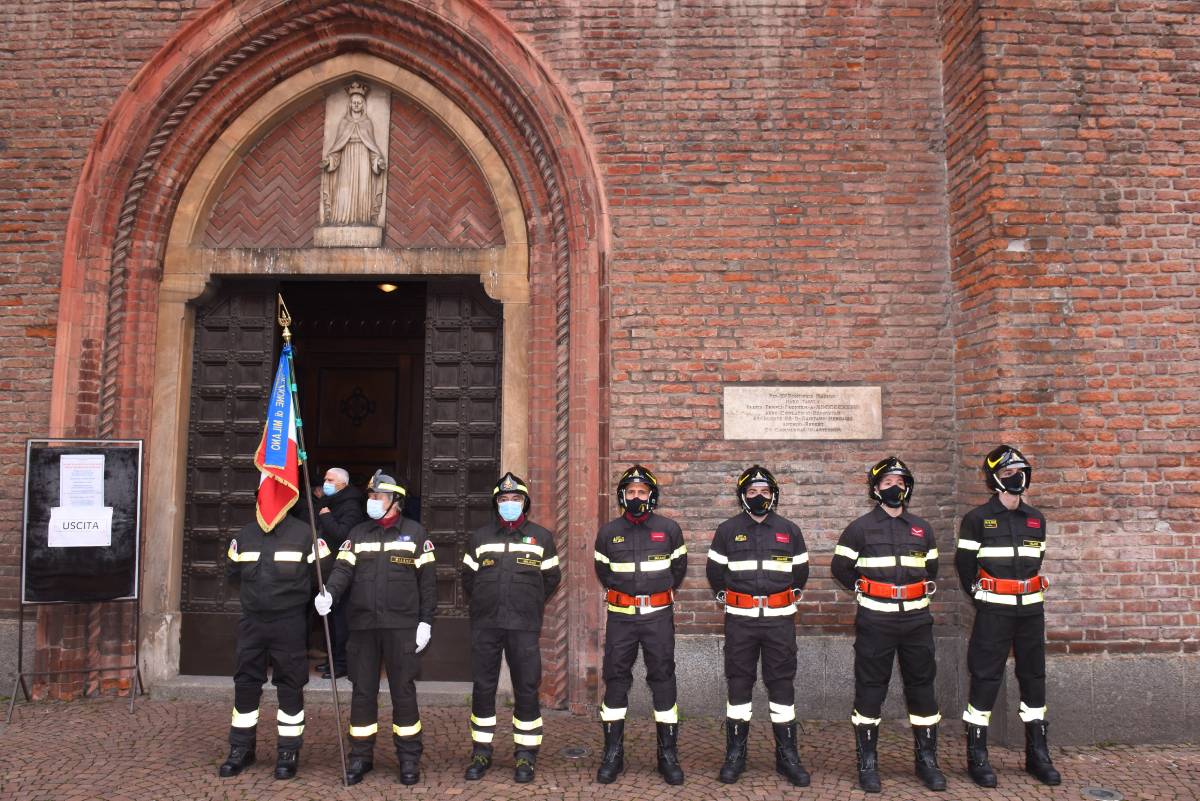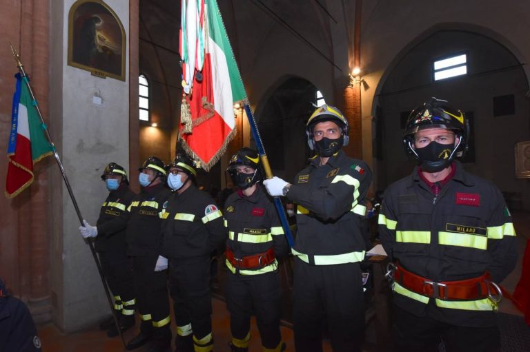 È questa l’atmosfera – bella e suggestiva – che si respira sul sagrato della parrocchia di Santa Maria Incoronata (oggi parte della Comunità pastorale “San Paolo VI”), situata sull’asse di corso Garibaldi, tra i quartieri di Brera e di piazza Gae Aulenti. La Milano di una delle sue più belle chiese quattrocentesche e quella dello sky line ormai famoso nel mondo, unite nel nome di Santa Barbara patrona dei Vigili del Fuoco. Che, in gran numero e con molte autorità – tra cui il prefetto, Renato Saccone, l’assessore Marco Granelli con la fascia del Primo cittadino, in rappresentanza del sindaco Beppe Sala, i vertici locali dei Carabinieri, Guardia di Finanza, Polizia di Stato, Polizia Penitenziaria – partecipano alla Celebrazione eucaristica presieduta dal vescovo Mario e concelebrata da don Giampiero Alberti. Un momento nel quale ricordare, con solennità, l’importanza dell’impegno dei Vigili del Fuoco, esempio di virtù «al servizio di chi è in difficoltà» e della forza buona «che nasce dalla compassione».