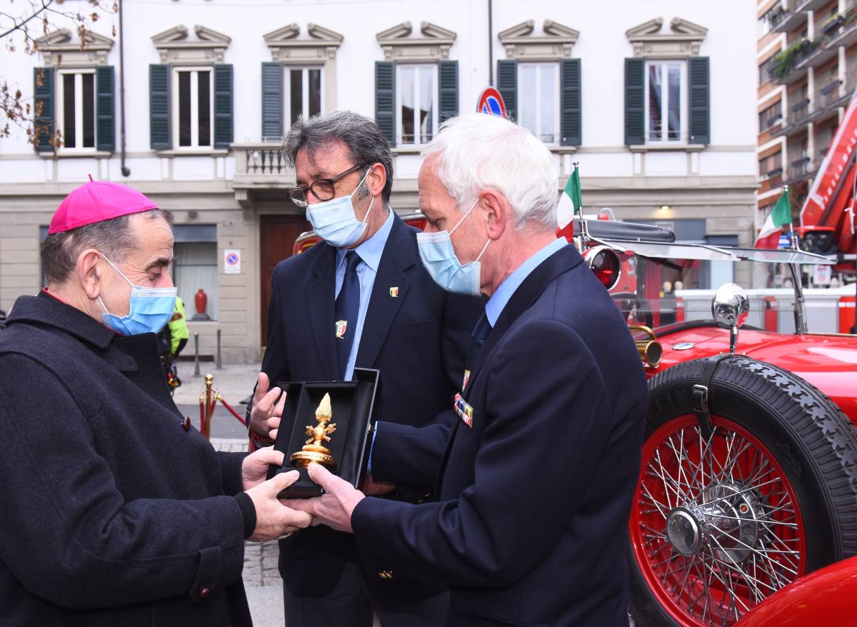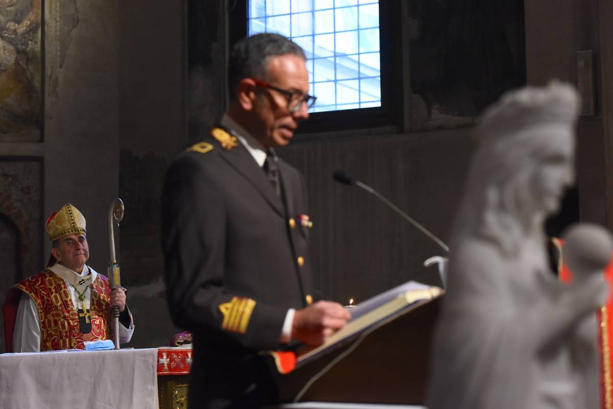 Una fierezza condivisa cui dà voce il dirigente provinciale vicario dei VF, Felice Iracà, prima della benedizione finale e della consegna della lettera “Tra la gente, per la gente”, dedicata dal vescovo Mario agli uomini e alle donne delle Forze Armate, dell’Ordine e della Polizia, È lui che sottolinea, ricordando anche i caduti in servizio: «la bandiera tricolore che abbiamo srotolato è il segno della nostra appartenenza allo Stato».