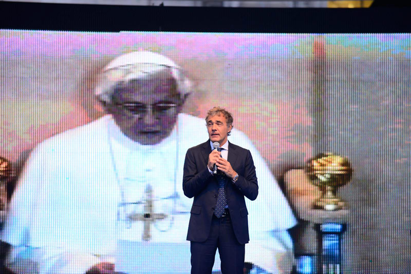 Dopo il giovane Salvatore, volontario di RnS in un carcere minorile («Gli errori alla luce della fede diventano trampolino di lancio verso una nuova vita»), anche Ferruccio de Bortoli, direttore del Corriere della Sera, ha portato la sua testimonianza («da milanese rimango ottimista»), prima di un altro momento-clou: un filmato di 8 minuti e mezzo appositamente registrato da papa Francesco a sostegno del progetto: «I 10 Comandamenti non sono limitazioni, ma indicazioni per la libertà!», ha adetto il Pontefice. «Essi ci insegnano ad evitare la schiavitù a cui ci riducono i tanti idoli che noi stessi ci costruiamo», aggiungendo: «La vera libertà non è seguire il nostro egoismo, le nostre cieche passioni, ma è quella di amare, di scegliere ciò che è bene in ogni situazione.I 10 Comandamenti non sono un inno al “no”, sono un “sì” a Dio e all’Amore».