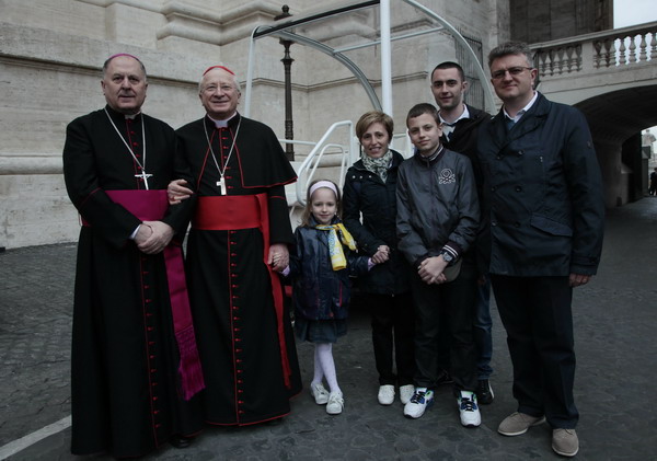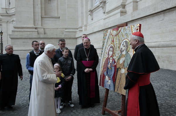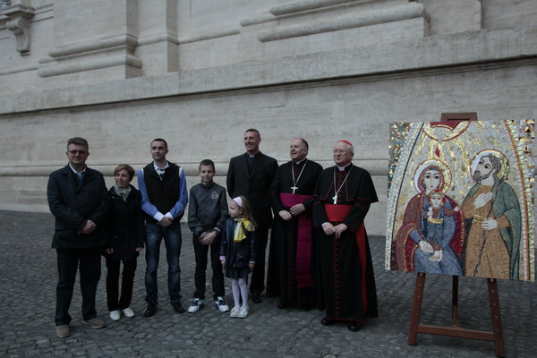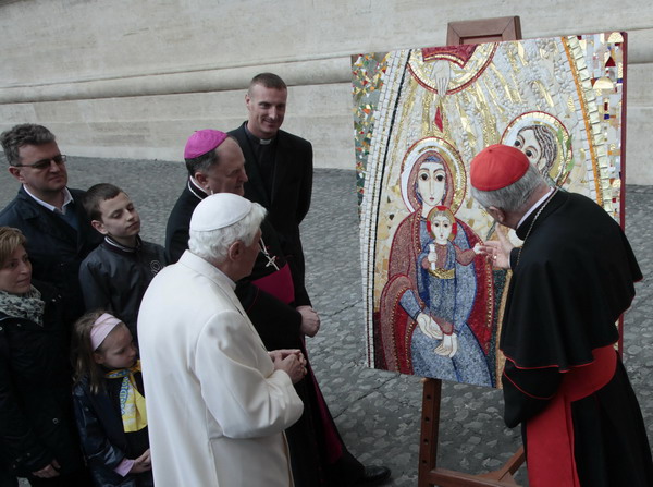 Poco prima dell’udienza, all’Arco delle Campane il Papa, soffermandosi sulla bellezza dell’opera, ha consegnato a monsignor De Scalzi il mosaico raffigurante la Sacra Famiglia, realizzato dall’artista gesuita Marko Rupnik. Presenti anche la famiglia Volontè di Rovello Porro (Co), in rappresentanza della Diocesi di Milano, il cardinale Ennio Antonelli, presidente del Pontificio Consiglio della Famiglia, e don Samuele Marelli, direttore del Servizio per i ragazzi adolescenti e l’oratorio della Diocesi di Milano. «Un momento importante per la Diocesi di Milano – ha detto monsignor De Scalzi -. La giornata di oggi è l’occasione in cui esprimere nuovamente gratitudine al Santo Padre che ha scelto di celebrare a Milano il VII Incontro Mondiale delle Famiglie».