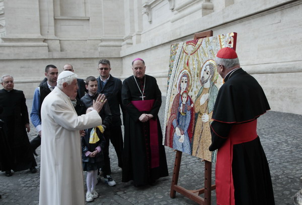 Il mosaico di Rupnik sostituisce l’icona di Kiko Arguello, fondatore dei neocatecumenali che era stata voluta nel 1994 dal compianto cardinale Alfonso Lopez Truijllo, presidente del pontificio consiglio per la famiglia sino al 2008. L’icona con la Sacra Famiglia di Truijllo è stata il simbolo dei passati incontri Mondiali: due volte a Roma (1994- 2000) a Rio de Janeiro (1997), a Manila (2003) a Valencia (2006) e a Città del Messico (2009).