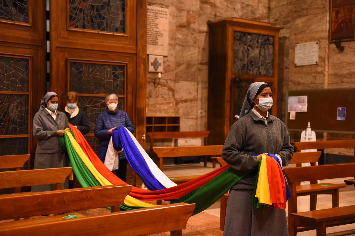 Infine, dopo aver portato tante sciarpe multicolori, a delineare il senso di un impegno contro la violenza che non dimentica nessuno e nessuna parte del mondo, la raccolta – all’uscita della parrocchia e ricordata a chi segue da casa – della colletta, le cui offerte vengono devolute a progetti per il lavoro giovanile in Albania; al sostegno per mamme e bimbi birmani esuli in Thailandia e per contribuire alla ricostruzione in Sud Sudan. «Chiediamo la benedizione di essere missionari. Siete benedetti da Dio e siate benedizione per chi incontrate», conclude l’Arcivescovo.