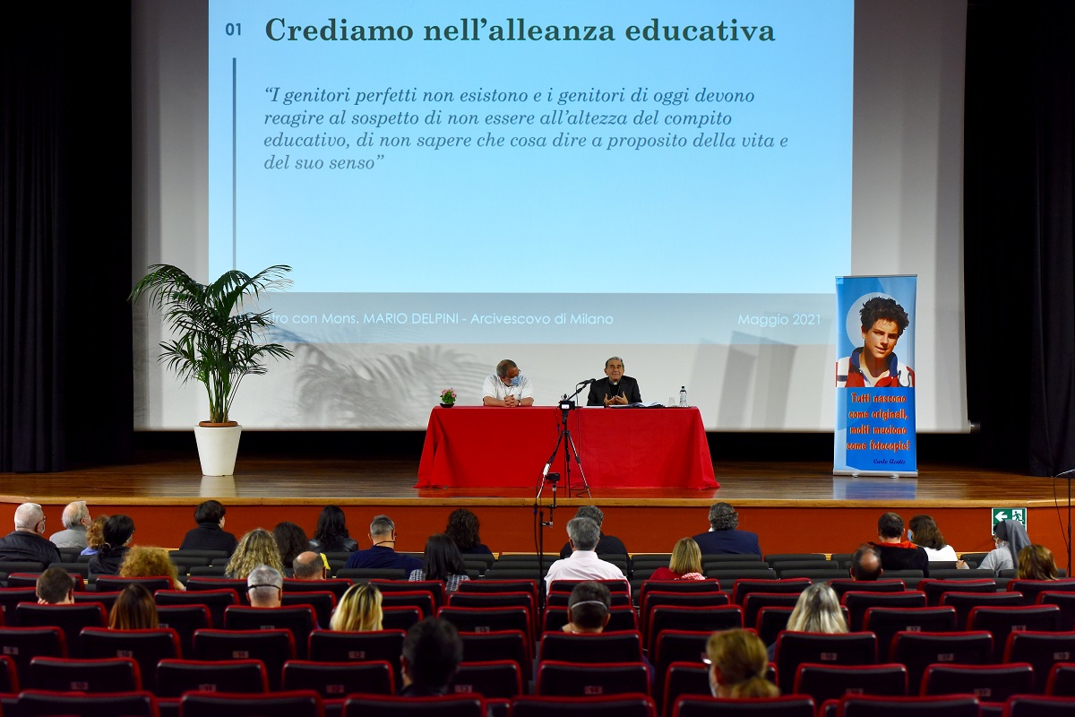 Il senso di una sfida educativa che, pur nei mutamenti dei tempi, lega il passato di una grande tradizione, il presente della realtà che stiamo vivendo e il futuro che tutti speriamo migliore, soprattutto per le nuove generazioni, e che chiede quindi agli adulti «impegno, consapevolezza, responsabilità». Potrebbe essere questa l’immagine sintetica del dialogo – durato più di un’ora – tra l’Arcivescovo e sei “attori” dell’alleanza educativa, svoltosi presso l’Auditorium Don Bosco a conclusione della II edizione del ciclo «Scuola per genitori», organizzato dall’oratorio Sant’Agostino e dall’Istituto salesiano Sant’Ambrogio.