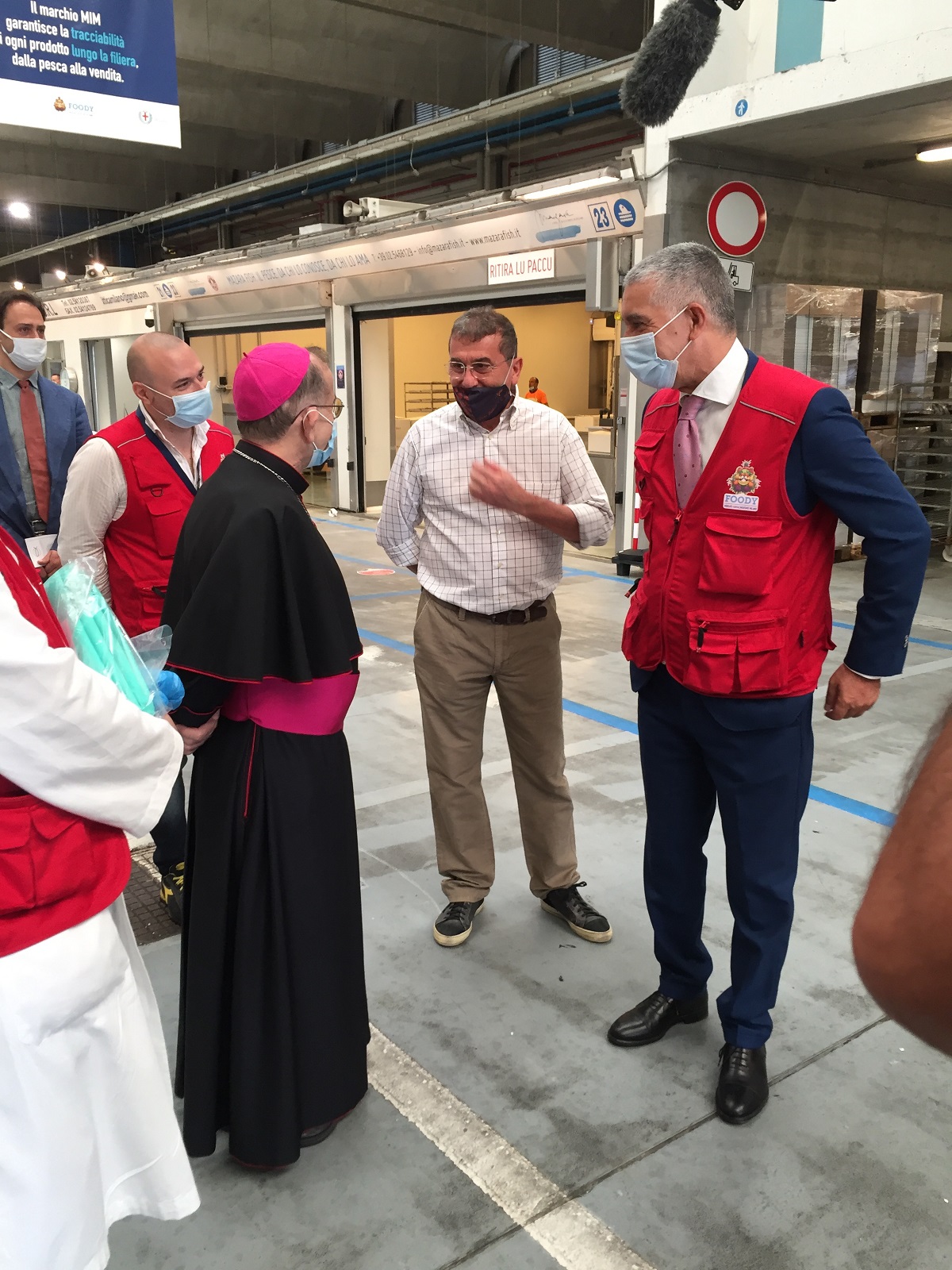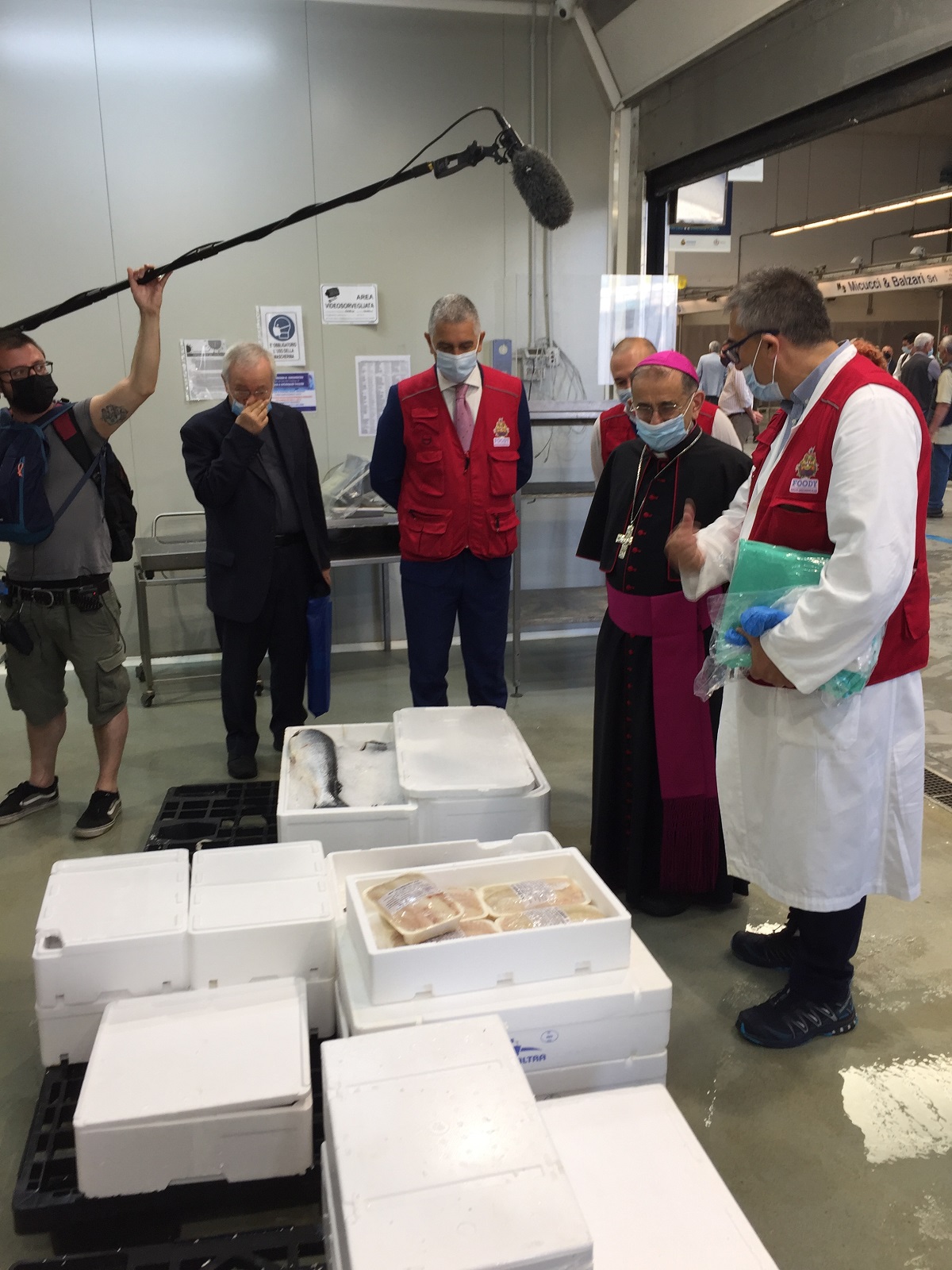 Roberto Lion, direttore generale di Sogemi, schiaccia subito la palla: «Quello ittico è un mercato che apre molto presto. La invitiamo pertanto a venire un’altra volta, alle quattro del mattino, così lo vedrà brulicare ancor più di operatori e clienti». Per nulla intimorito, l’Arcivescovo risponde con un bagher da pallavolista: «Sono appena stato rimproverato, perché avrei dovuto venire qui alle quattro del mattino, invece che alle 7.30. Accetto l’invito. Tornerò un’altra volta a quell’ora».
