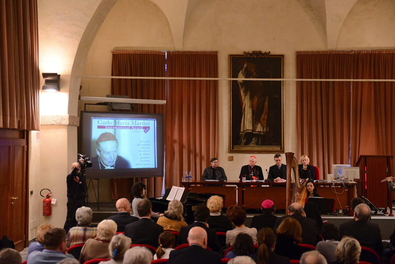 Un intermezzo musicale a cura di Federica Peruzzini (flauto traverso), Roberta Zacheo (arpa) e Annalisa Ferrara, artiste legate al Centro Esagramma, ha condotto il pubblico al momento centrale. La premiazione, per mano del cardinale Scola e con la presentazione della giornalista Annamaria Braccini, dei vincitori della prima edizione del Carlo Maria Martini international award. Tra i 140 lavori presentati da 152 concorrenti la giuria ha scelto per la prima sezione (aperta a scritti e opere rivolti a contribuire allo studio e alla conoscenza del pensiero e della figura di Martini) suor Cristiana Dobner per “L’eccesso. Tu, Carlo Maria Martini, che dici di Gerusalemme?” e Nicola Salvi per il docu-film “Carlo Maria Martini uomo di Dio” (Corriere della Sera). Per la seconda sezione (finalizzata allo sviluppo del rapporto tra Bibbia e cultura nei suoi vari ambiti) il premio è stato conferito a Raffaele Mellace per “Johann Sebastian Bach. Le Cantate”, e Nguyen Dinh Anh Nhue, Tran Thi Ly e Jb. Pham Quy Trong per “The Bible and asian culture. Reading the Word of God in its cultural background and in the Vietnamese context”.