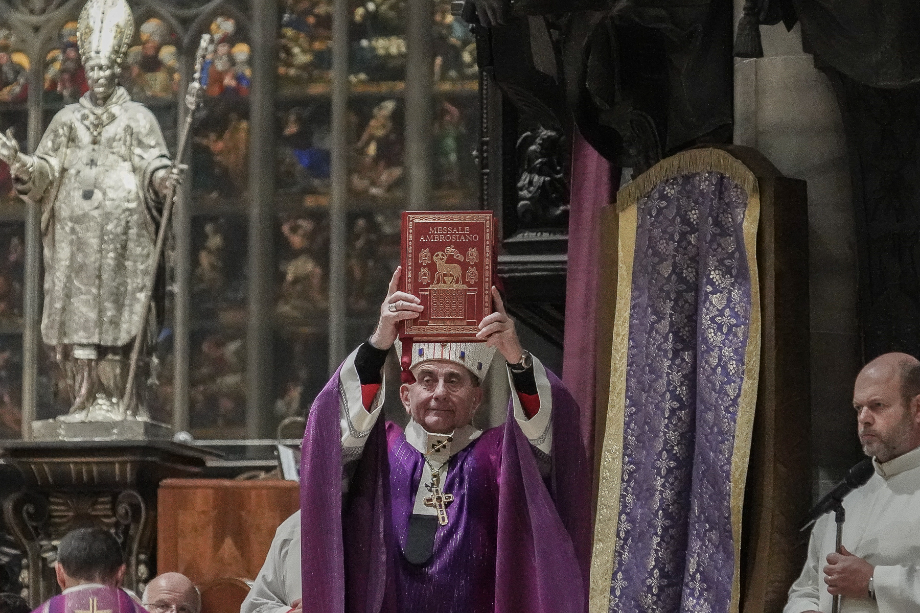 All’inizio della Messa, da lui presieduta in Duomo e concelebrata dal Moderator Curiae monsignor Carlo Azzimonti, da alcuni canonici del Capitolo metropolitano della Cattedrale e dagli assistenti ecclesiastici della Coldiretti per la Diocesi di Milano don Matteo Vasconi, e per quella di Lodi Alessandro Lanzani, l’Arcivescovo definisce il senso e l’importanza di un momento importante per la nostra Chiesa, articolato sull’evento particolarmente significativo che quest’anno segna l’inizio dell’anno liturgico ambrosiano: l’entrata in vigore del nuovo Messale. Che, nella sua curata edizione dalla copertina rossa e oro, viene portato in processione fino all’altare maggiore, dove monsignor Delpini legge la Monizione iniziale, affinché «in questo Duomo e in tutte le comunità di Rito Ambrosiano, il Messale sia strumento della celebrazione liturgica, per entrare nel mistero della Pasqua di Gesù e partecipare alla vita del Figlio unigenito di Dio, il Signore Nostro Gesù Cristo; sia via che introduce nella familiarità di Dio per il dono dello Spirito di Gesù; sia ispirazione per la preghiera personale e dell’intera assemblea».