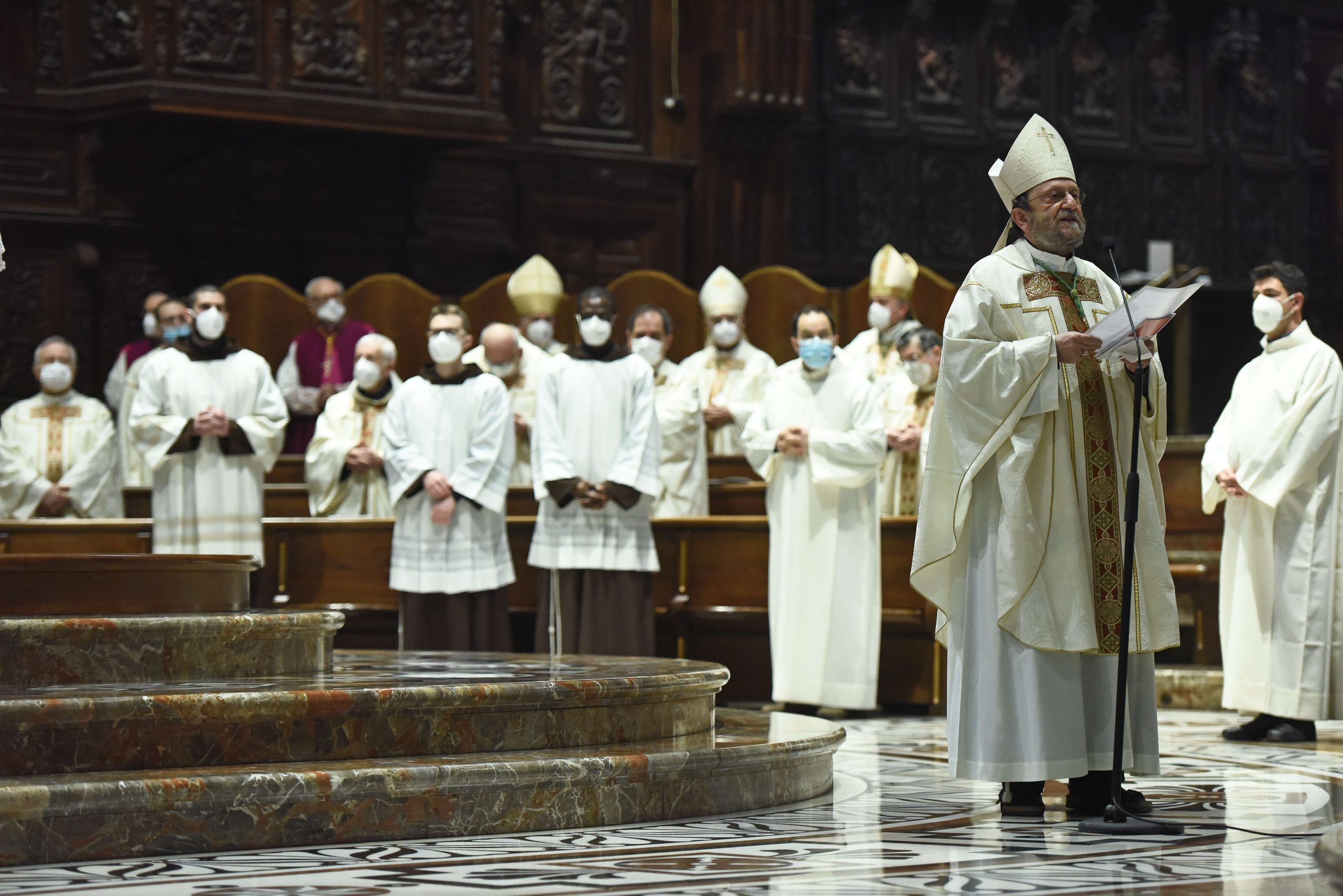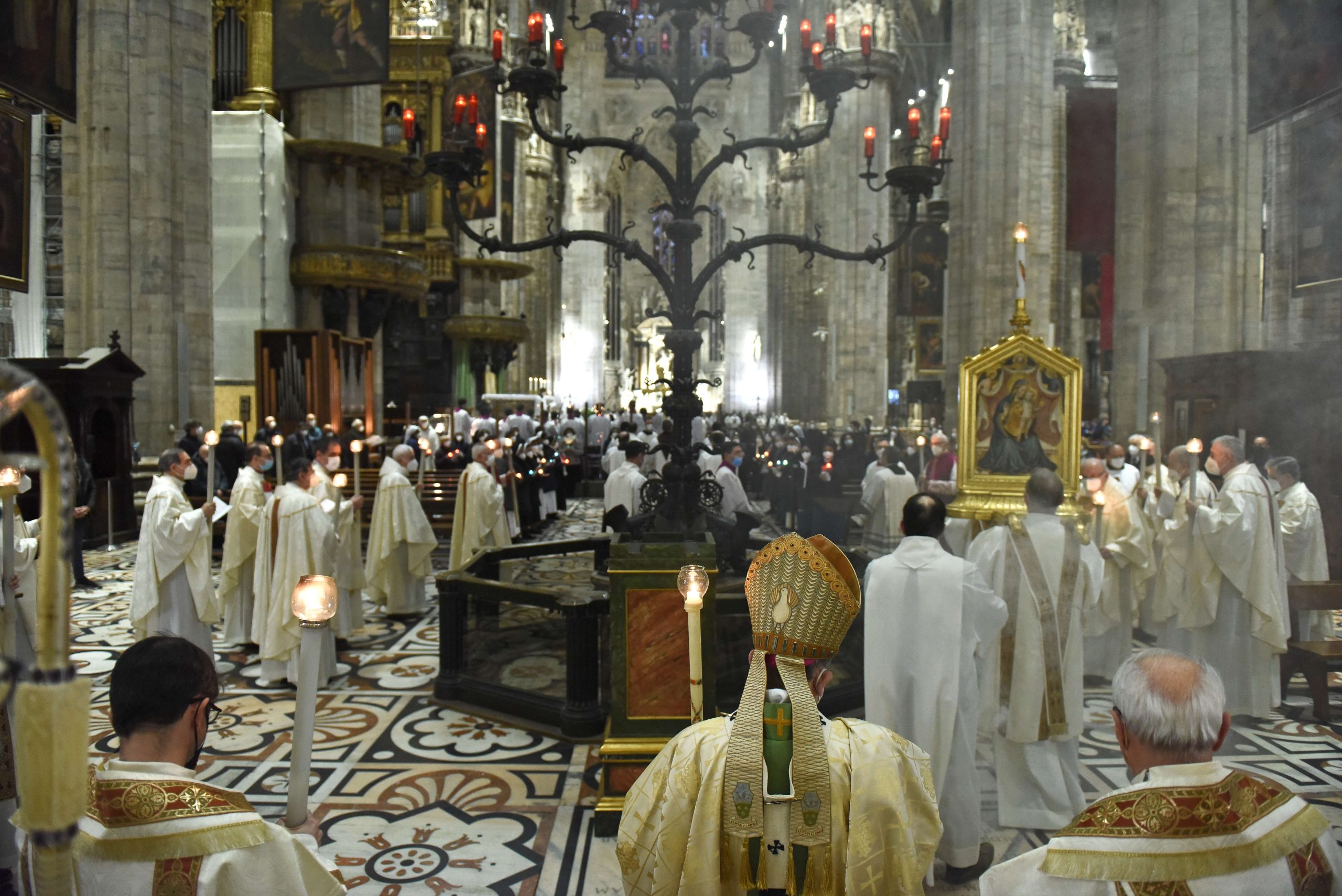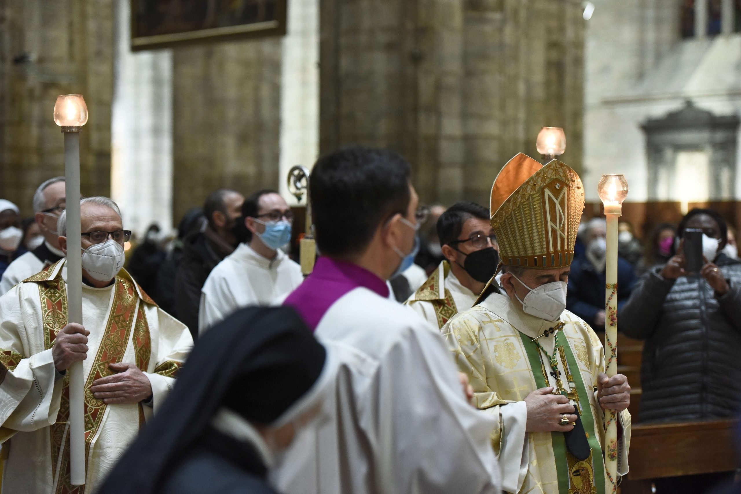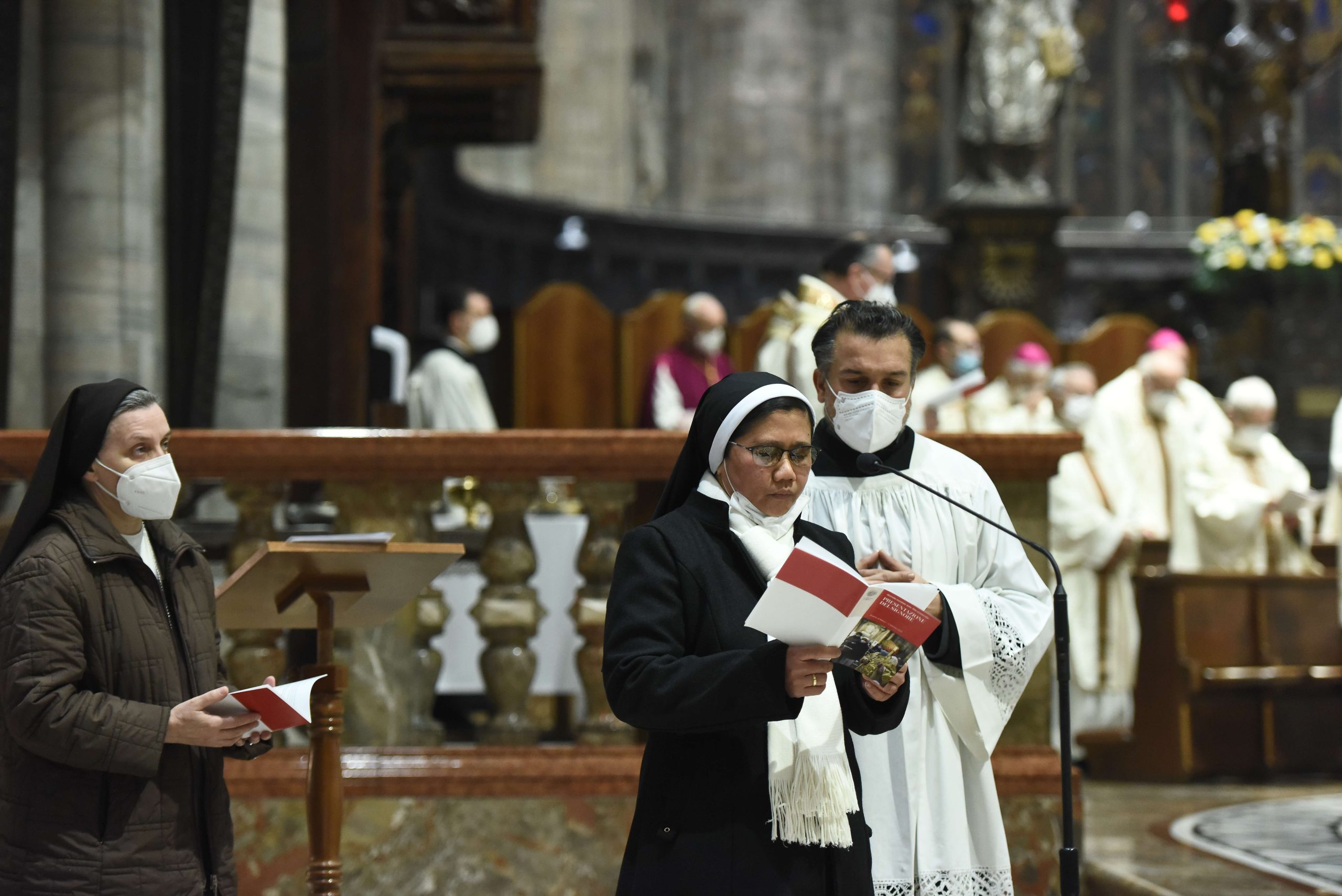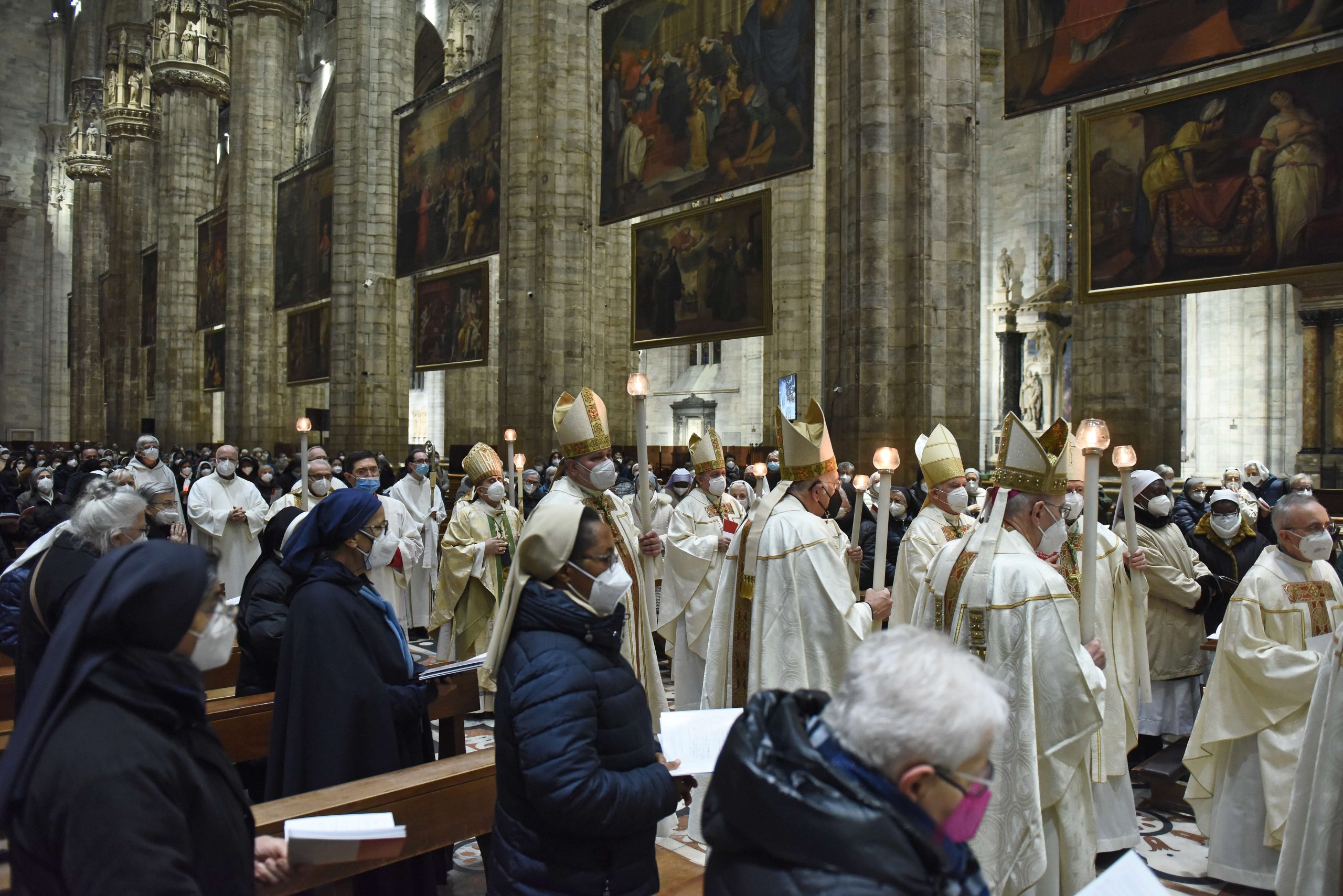 «Oggi le persone consacrate che vivono e operano nell’Arcidiocesi ambrosiana le esprimono profonda gratitudine per averle convocate in Duomo», dice in apertura, rivolgendosi al vescovo Mario, monsignor Paolo Martinelli, vicario episcopale di Settore, che ricorda come la partecipazione alla celebrazione risenta ancora pesantemente della pandemia, «con intere comunità in quarantena». Un periodo tribolato, ma «forse, anche un’occasione provvidenziale per riscoprire la cura, la vicinanza, la prossimità verso chi è nel bisogno, come risposta a quel prendersi cura di noi che Cristo stesso ha realizzato come Gesù buon Pastore».