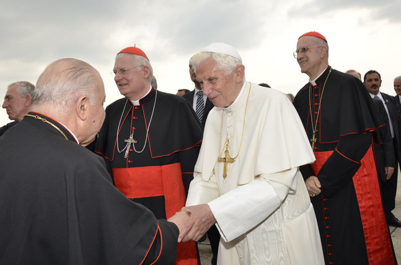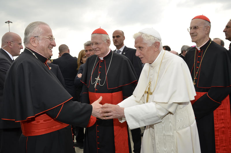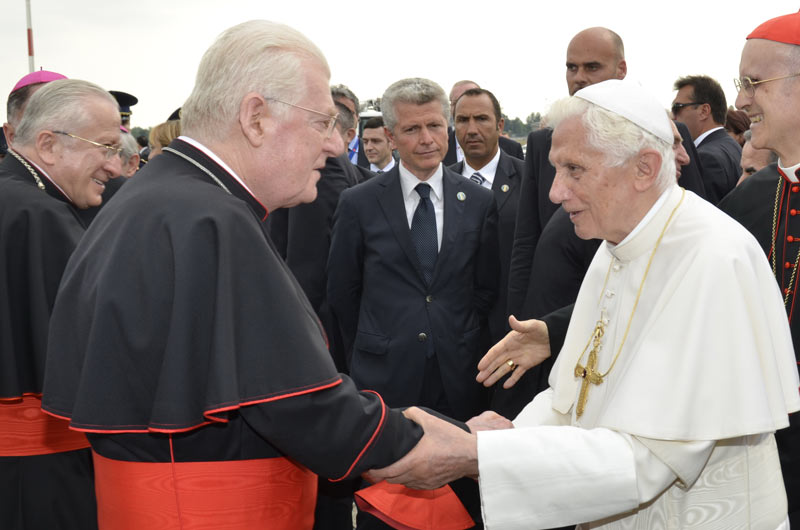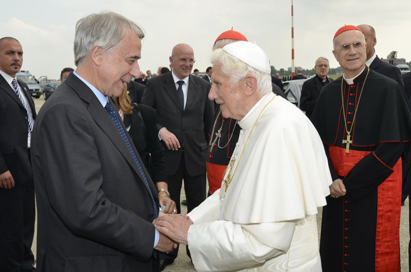 Prima di salire sulla scaletta il Santo Padre ha salutato Mons. Erminio de Scalzi, Presidente della Fondazione Milano Famiglie 2012, il cardinale Ennio Antonelli, Presidente del Pontifico Consiglio per la famiglia e, per ultimo, l’Arcivescovo di Milano cardinale Angelo Scola. Per ben due volte il Pontefice, prima di entrare nel velivolo, si è girato a salutare in un clima caloroso e informale. Come ci si saluta tra amici dopo aver trascorso tre giorni insieme.