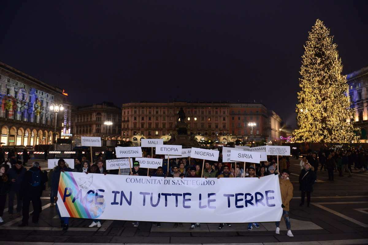 Una realtà, una speranza di vita buona e possibile, una convivenza che si rende presente, prima, nello scambio della pace tra i concelebranti e i Ministri delle Chiese e, a conclusione, dalla Benedizione finale invocata coralmente, mentre e si srotola, nelle prime file del transetto, un grande striscione della Comunità di Sant’Egidio (che precedentemente aveva promosso una partecipata Marcia della Pace). Le parole? “Pace in tutte le terre”.