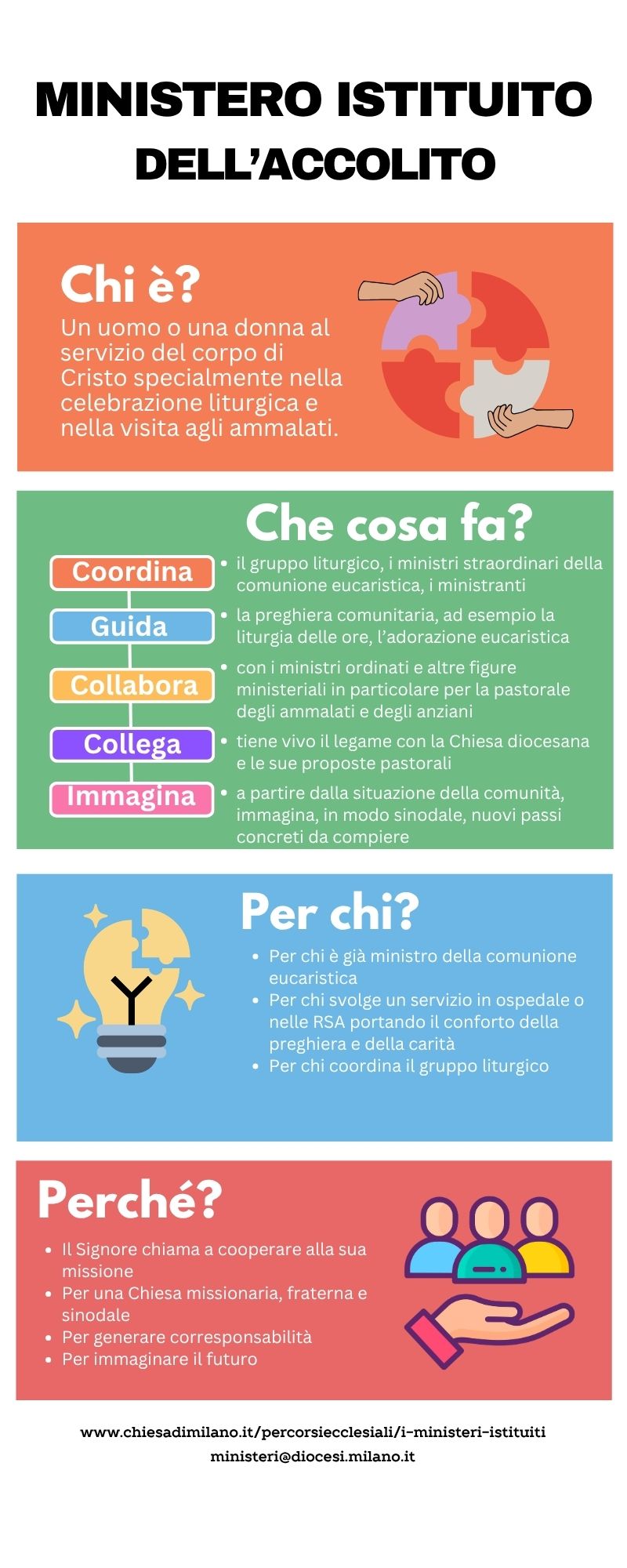 Domenica 19 ottobre alle 17.30 nella celebrazione in Duomo, presieduta dall’arcivescovo, mons. Mario Delpini, saranno istituiti i primi ministri della Diocesi (vedi qui un’infografica): lettori (infografica), accoliti (infografica) e catechisti (infografica) (diretta sul portale diocesano chiesadimilano.it e sul canale Youtube.com/chiesadimilano).