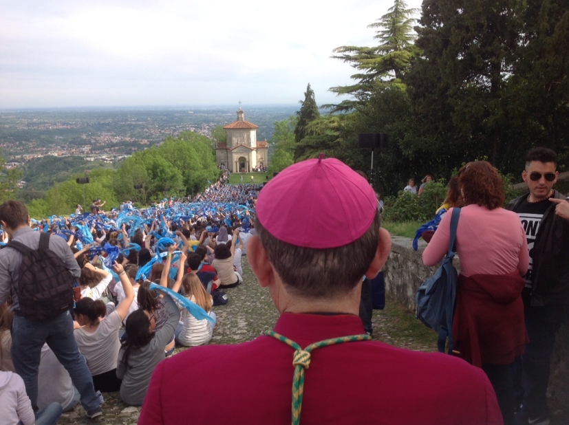 Loro – i tanti, i tutti –, a cui si rivolge il vicario generale, monsignor Mario Delpini, sono le migliaia e migliaia di ragazzi e ragazze che popolano, come un mare colorato fatto di fazzoletti azzurri e blu, il Sacro Monte. È il Cammino diocesano dei quattordicenni della Professione di Fede, che sui svolge quest’anno all’insegna dello slogan «Passi verso l’alto».