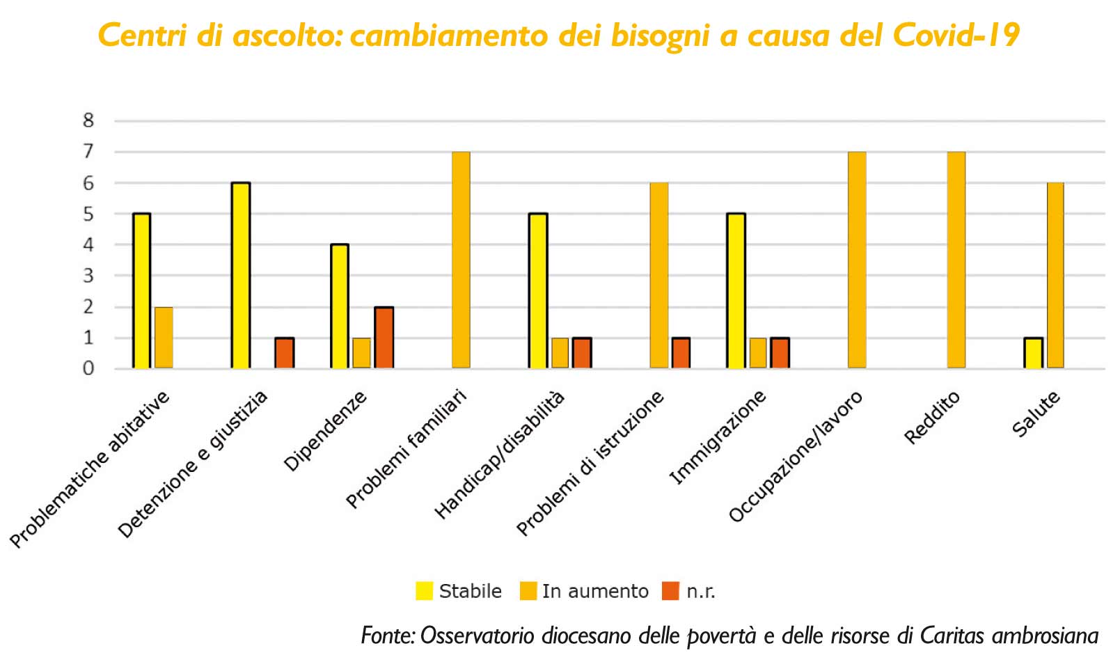 Che ci sia bisogno di questo tipo di attenzione, segno di una solidarietà che si fa prossima, è quanto emerge dai Centri di ascolto della Caritas zonale, secondo cui il Covid-19 ha portato con sé problematiche occupazionali e un aggravio delle difficoltà economiche delle famiglie, oltre che la comparsa di bisogni di aiuto e assistenza (socio-sanitaria, ma anche educativa) strettamente connessi alle limitazioni di spostamento e di relazioni in presenza, imposte dall’emergenza. Bisogni, richieste e circostanze che hanno spinto a innovare le modalità di risposta, e hanno dato prova di un territorio che si attiva, capace di mobilitare nuove risorse, anche umane, a partire da nuovi giovani volontari. È così emerso un protagonismo che ha in parte supplito alla minor libertà di movimento dei volontari più anziani e più a rischio per la salute. Un protagonismo prezioso che occorrerà saper valorizzare anche in futuro per invertire la tendenza a veder aumentare, assieme all’invecchiamento della popolazione (registrata qui, come in altri decanati già analizzati in questi Dossier), l’impegno nei Centri di ascolto dei volontari più anziani e contrarsi quello dei più giovani. Gli uni e gli altri sono egualmente preziosi per una comunità che si prende cura.