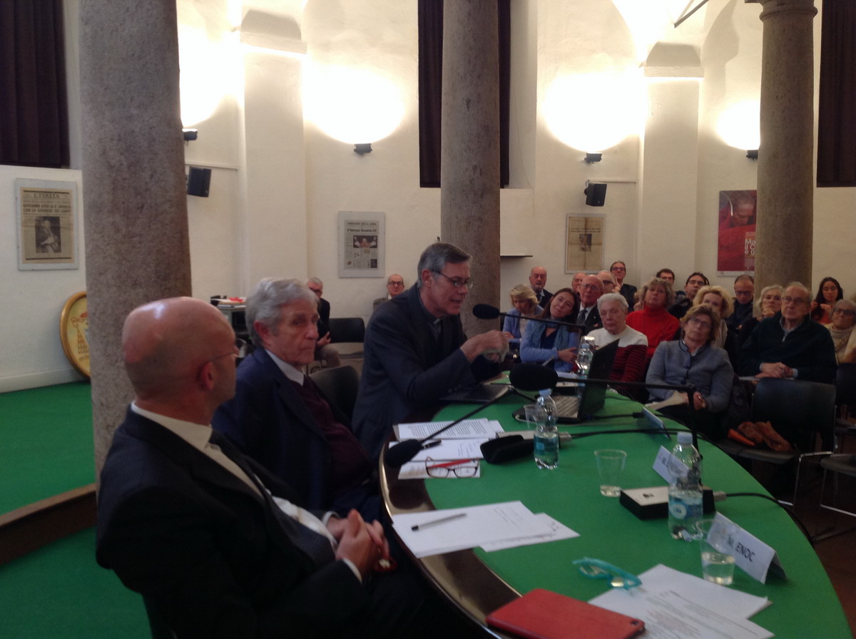 Introdotti dal presidente dell’“Ambrosianeum”, Marco Garzonio – che è anche analista e psicoterapeuta e che ricorda l’intervento di Martini, il 15 aprile 2002, al Congresso mondiale di psichiatria che si tenne a Milano -, prendono la parola Mariella Enoc, presidente dell’Ospedale Pediatrico Bambino Gesù di Roma, padre Carlo Casalone, presidente della Fondazione Carlo Maria Martini e Mario Colombo, direttore generale Istituto Auxologico Italiano. È lui che osserva: «Il cardinale Martini assiste a mutamenti importanti dalla metà degli anni Ottanta ai Novanta, con la aziendalizzazione della sanità e la logica del privato commerciale, fino al nuovo millennio, con gli sviluppi della medicina e le nuove tecniche applicate alla genetica. Questo vuol dire che ha avuto una visione larga e trovo, nelle sue posizioni, quanto dice l’arcivescovo Delpini nella sua recentissima lettera inviata ai medici, “Caro dottore”. Vi sono. in entrambi. la condanna del profitto economico a tutti i costi e il poco tempo dedicato al paziente, insieme alla necessità di una formazione etica e filosofica del medico. Per il cardinale Martini la malattia ci riporta all’essenziale e ci costringe a leggere il futuro in maniera differente: per questo è necessario, per i pazienti, un sostegno e un aiuto. Il malato non può essere consegnato solo alla medicina – che si occupa del come rimandare la morte -, perché questa non è sufficiente a spiegare il perché della malattia. Occorre un rapporto da persona a persona, con uno stile di comunicazione che sappia rispettare la storia di ciascuno, entrandovi con discrezione».