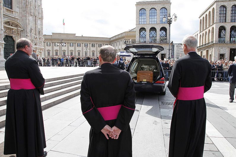 Al termine della breve, ma intensa preghiera, alla quale erano presenti anche i primi segretari di Martini (monsignor Erminio De Scalzi, monsignor Luigi Testore e don Gianni Cesena) e monsignor Gianni Zappa, molti fedeli sono rimasti in Duomo raccolti in preghiera e inginocchiati davanti alle spoglie del Cardinale, che sarà sepolto in una cappella laterale del Duomo dopo i funerali di lunedì 3 settembre alle 16 (in diretta su Rai 1). In questi giorni la cattedrale resterà aperta per consentire a tutti, credenti e non, di rendere omaggio alla salma dell’Arcivescovo emerito, e sarà garantita anche la presenza di confessori. Intanto Telenova2 è già in collegamento diretto con il Duomo di Milano.