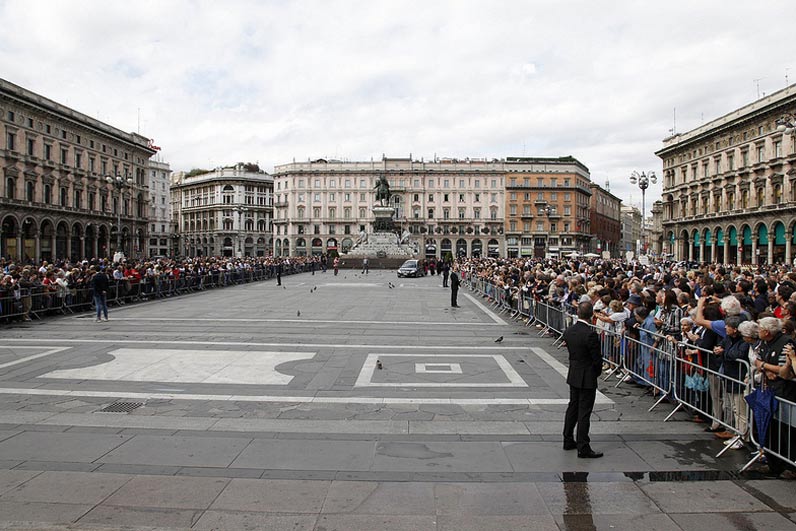Un applauso caloroso e un sole insperato hanno accolto a mezzogiorno la salma del cardinale Carlo Maria Martini in piazza Duomo. Il feretro era partito questa mattina alle 11 da Gallarate con i familiari, monsignor Mario Delpini, Vicario generale della Diocesi, monsignor Luigi Testore, esecutore testamentario scelto dall’Arcivescovo emerito e monsignor Gianni Zappa, suo portavoce dal 1997 al 2002. Ad attenderlo l’arcivescovo Angelo Scola, il Consiglio episcopale milanese e il Capitolo del Duomo, che già questa mattina alle 8.30 ha celebrato una messa di suffragio presieduta da monsignor Claudio Magnoli. Erano presenti naturalmente anche le autorità civili, rappresentanti del Comune, della Provincia e della Regione Lombardia. Le parole di saluto al grande pastore di Milano le ha rivolte monsignor Paolo Sartor del Capitolo del Duomo, che ha ricordato i tratti salienti della figura di Martini e del suo impegno episcopale nella Chiesa ambrosiana, fino all’ultimo incontro nel giugno scorso con Benedetto XVI giunto in città per il VII Incontro mondiale delle famiglie. «Bentornato a casa, prega per noi e con noi, come noi ora preghiamo per te», ha detto Sartor, che ha poi invitato tutti i presenti a «vivere nella fede questo momento di passaggio».