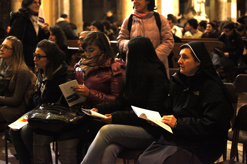 La prima serata ha registrato una buona partecipazione di giovani – calcolata complessivamente in circa 4500 presenze – con generale apprezzamento per le riflessioni dei predicatori. Ai partecipanti sono state distribuite cartoline con “Le domande della fede” (nel box a sinistra), che invitano i giovani a cercare un dialogo sulla fede con chi non è presente agli Esercizi. Ma la cartolina può essere utilizzata anche per scrivere una riflessione o una domanda da far pervenire all’Arcivescovo in vista dei due incontri con lui previsti il 24 gennaio e il 14 febbraio nell’ambito di “Varcare la soglia”.