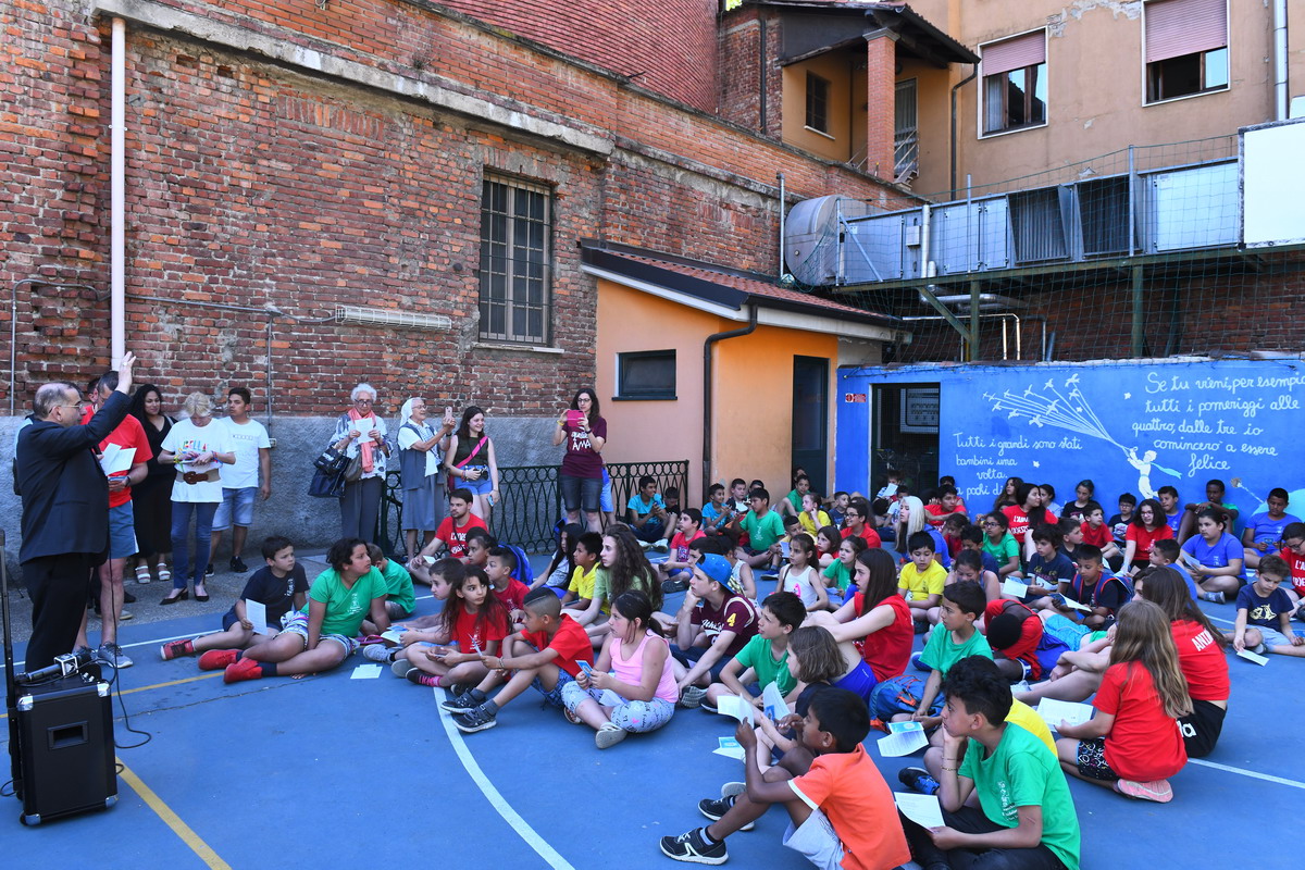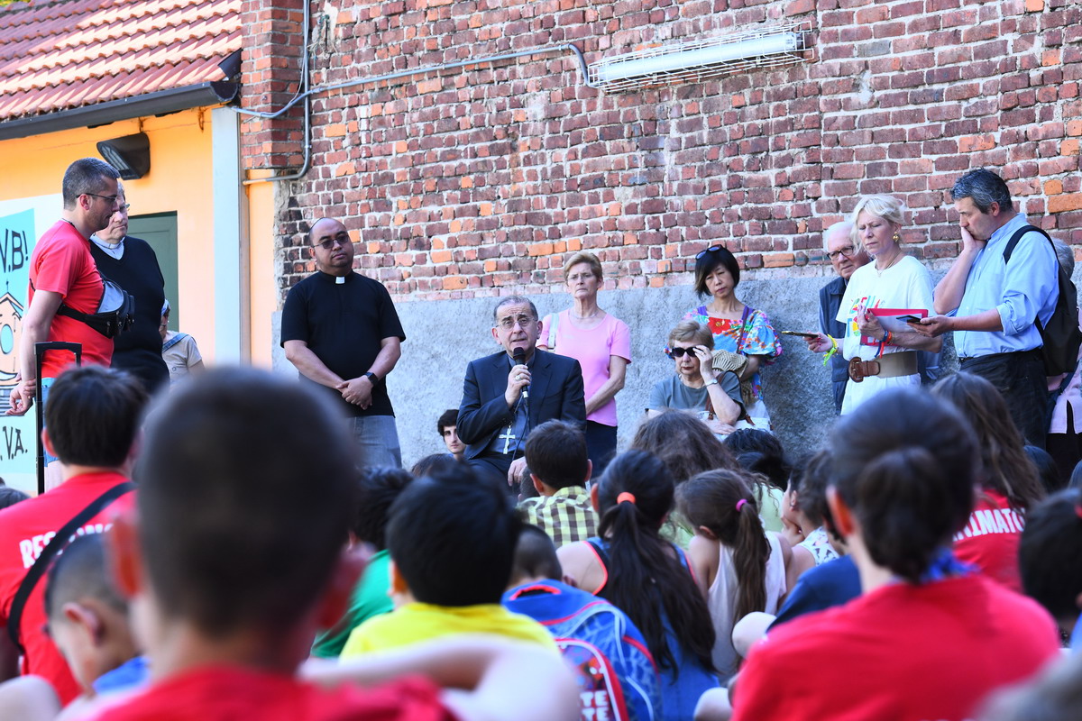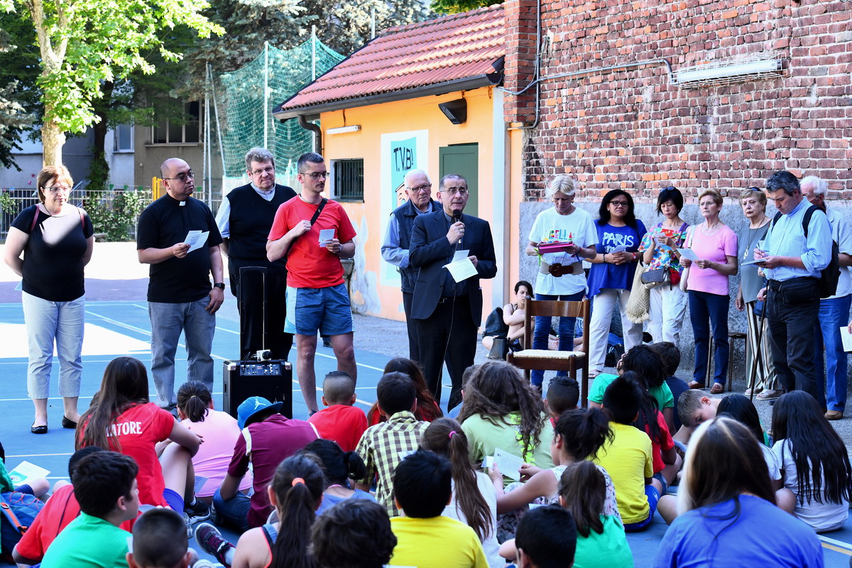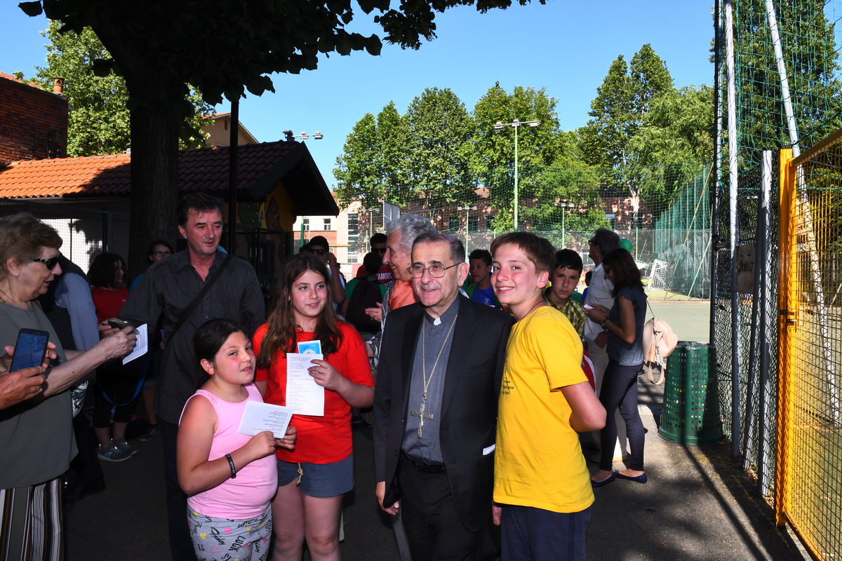 Dopo aver accolto festanti l’Arcivescovo, con i sacerdoti, il parroco e Decano, don Giovanni Castiglioni e il vicario parrocchiale, don Fabio Carcano, con le religiose e i laici impegnati nell’oratorio, i genitori, sono due adolescenti a porre le loro domande, introdotte da Laura, un’educatrice, che spiega. «I nostri bambini sono multicolori – quest’anno la maggioranza proviene dal Marocco, l’anno scorso, dall’Egitto -, qui trovano una casa in cui si sentono accolti e riconosciuti, capiscono cosa voglia dire giocare insieme, anche litigare, ma soprattutto fare pace. A volte, nelle nostre strade, domina la bruttezza, ma in oratorio sanno che trovano un posto di gioia».