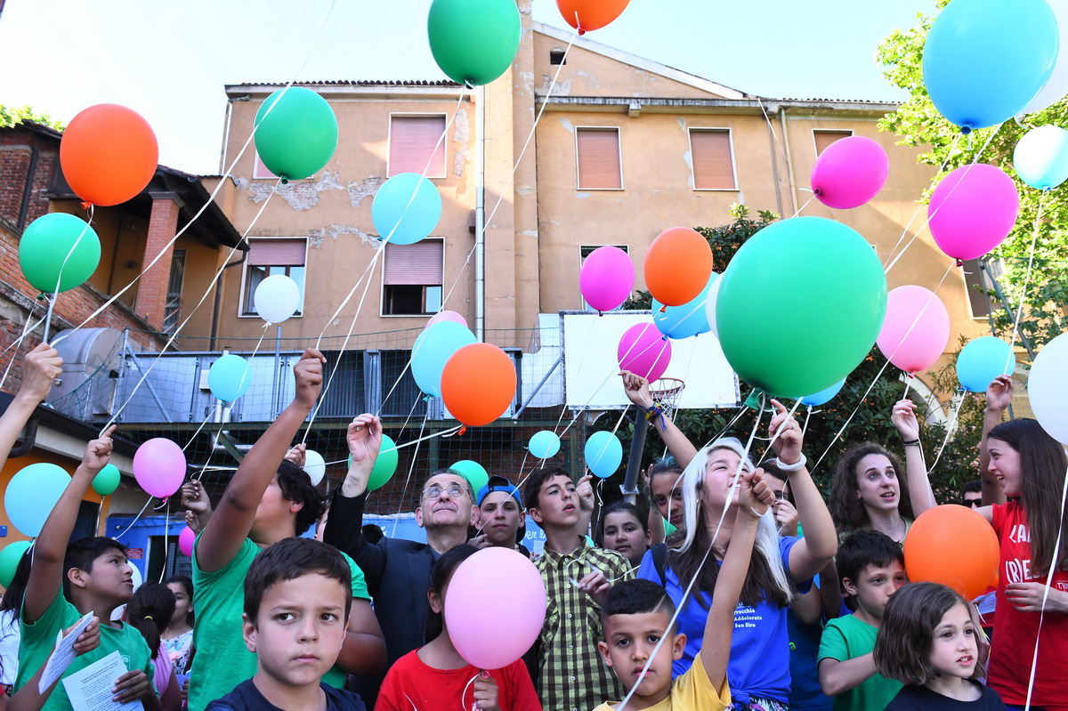 I palloncini colorati che salgono al cielo, dopo la foto di gruppo, sono il segno di un “multicolore” della pelle e dei cuori capace di andare oltre le tante barriere e steccati del mondo.