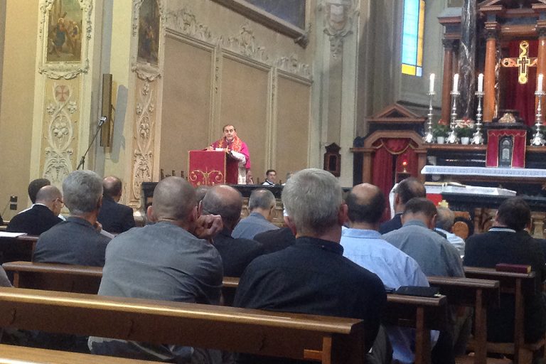 La celebrazione di preghiera e benedizione per tutti i presbiteri che hanno ricevuto una nuova destinazione e l’immissione nell’Ufficio di parroci e responsabili di Comunità pastorali, che si svolge presso il Centro pastorale ambrosiano di Seveso, si fa occasione per rileggere alcuni dei punti cardinale della missione sacerdotale all’interno della Chiesa. Le letture previste per questo Rito – dal Libro del profeta Geremia, dalla prima Lettera di San Paolo ai Corinzi e dal capitolo 10 del Vangelo di Giovanni (con il famoso brano del Buon Pastore) -, ma anche gli adempimenti formali divengono, infatti, una preghiera unica e condivisa, come chiede l’Arcivescovo che presiede la celebrazione. Molti i preti presenti, tra cui i 52 che giurano fedeltà nell’assumere l’ufficio da esercitare a nome della Chiesa, cui si aggiungono 6 presbiteri che assumono incarichi diversi, come la responsabilità di cappellanie ospedaliere.