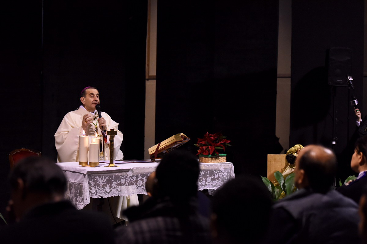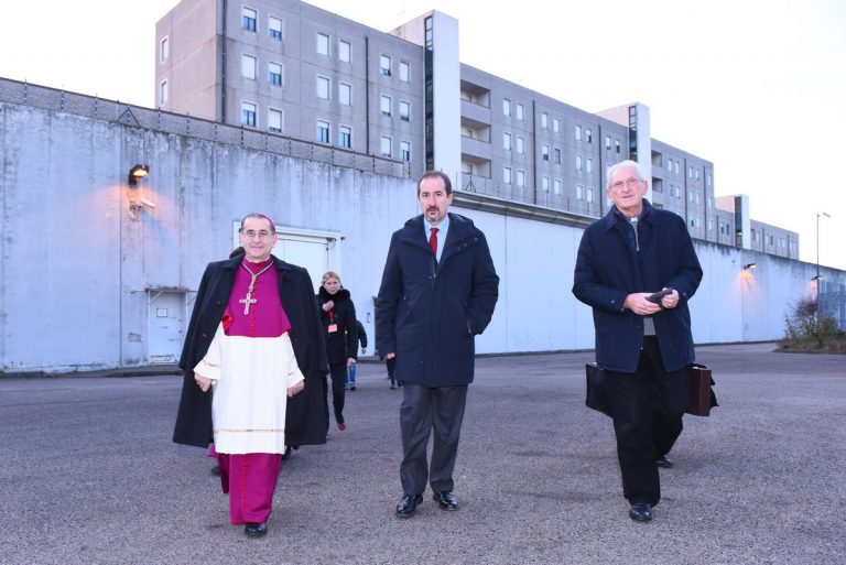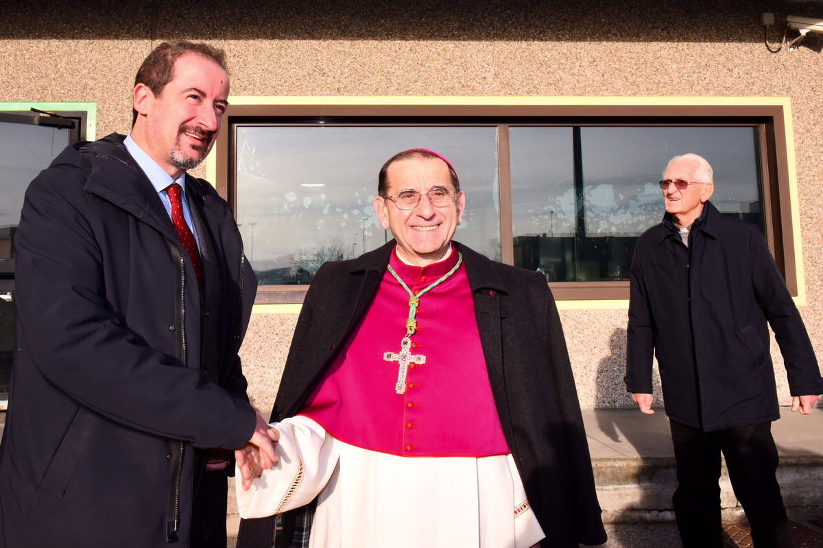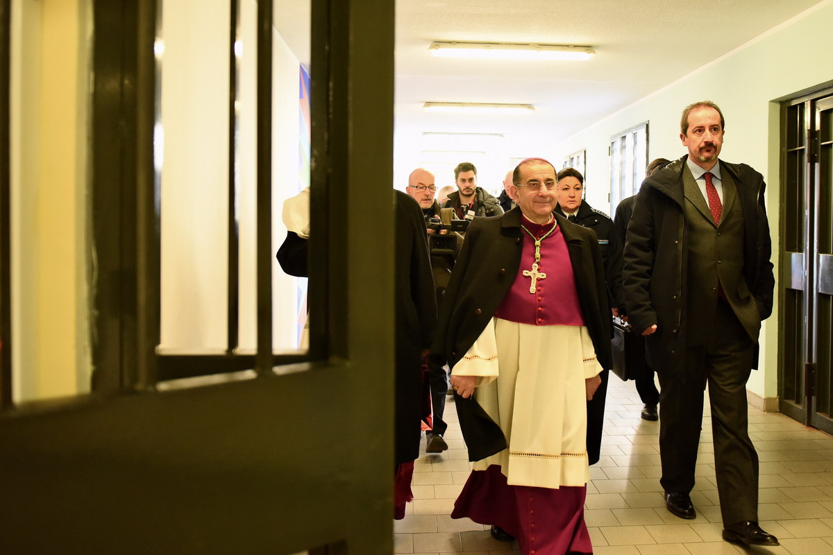 Il “Venite adoremus” che apre la Celebrazione della mattina di Natale, come avviene in migliaia e migliaia di chiese sparse nel mondo e che rende la Messa un momento offerto a tutti in modo uguale. Anche se l’Eucaristia che l’Arcivescovo presiede, appunto di prima mattina nel giorno della nascita del Signore, è in carcere. La Casa circondariale di Bollate – un esempio virtuoso nel panorama delle carceri italiane con i suoi 1470 reclusi, tra cui 150 donne e circa 40 condannati all’ergastolo – apre le porte. Ad accogliere il vescovo Mario ci sono il direttore, Fabrizio Rinaldi con la comandante degli agenti di Polizia penitenziaria e i cappellani, Don Antonio Sfondrini e don Fabio Fossati. Arriva anche il cardinale Francesco Coccopalmerio che celebra la Messa successiva.