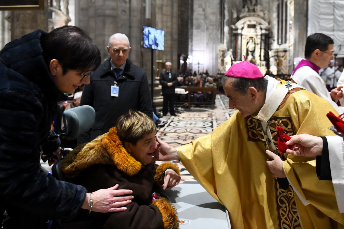 «Spesso si pensa che l’evangelizzazione sia una forma di comunicazione verbale. Ma il Vangelo non è soltanto una parola, è molto di più. Evangelizzare significa predicare, ma anche altro che si può fare in modo diverso. Voglio invitare tutti coloro che si sentono attivi nell’annuncio, a irradiare la gioia, tirando fuori il bene che c’è negli altri. L’essere assistiti, il chiedere aiuto, così, non è una dipendenza, ma fa scoprire il bene anche a chi aiuta. Questa è l’evangelizzazione: stabilire relazioni di carità, comprendendo che lo scambio non è mai a senso unico». Bene lo sanno, per esempio, coloro che accompagnano i malati a Lourdes, come i tantissimi gli Unitalsiani riuniti in Cattedrale con il loro presidente lombardo, Vittore De Carli.