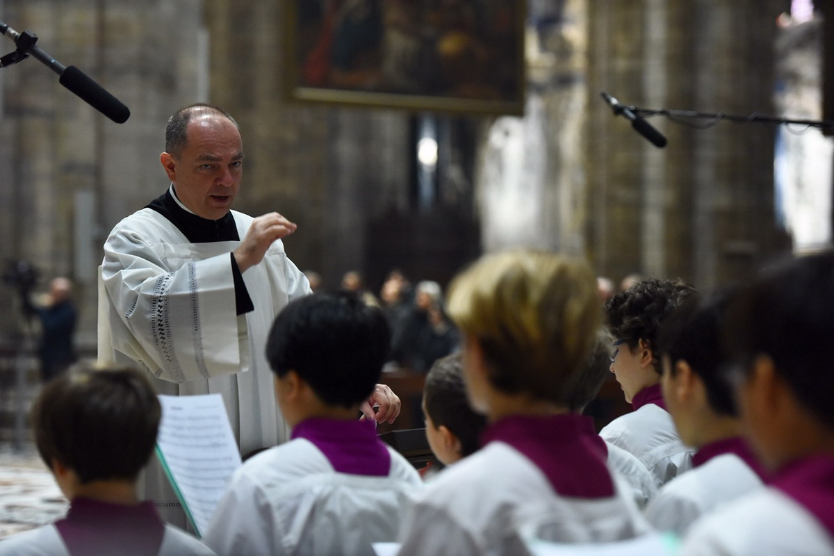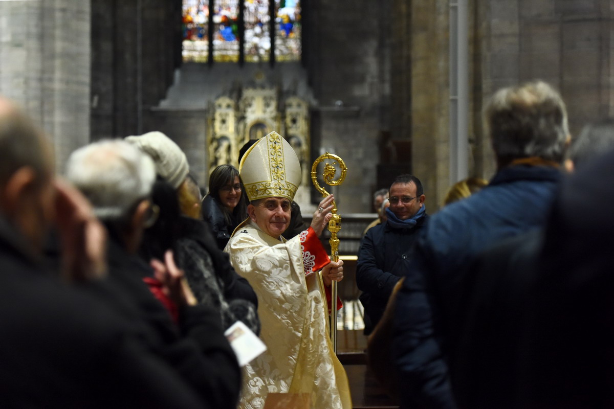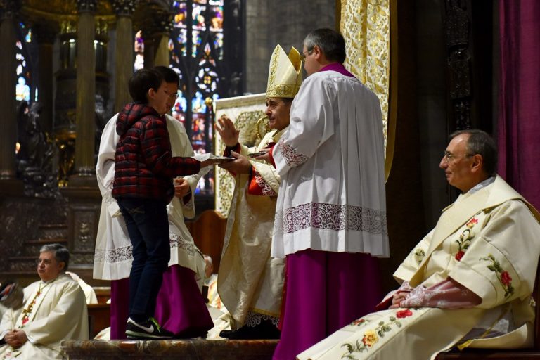Un augurio arriva, poi, anche per un giovanissimo allievo della Scuola dei Pueri Cantores della Cappella musicale del Duomo, solitamente incaricato di intonare il Salmo Responsoriale – cantato poco prima – Gianluigi Sartori, “reduce” dal suo debutto alla Scala, avendo interpretato il pastorello nella “Tosca” della Prima.