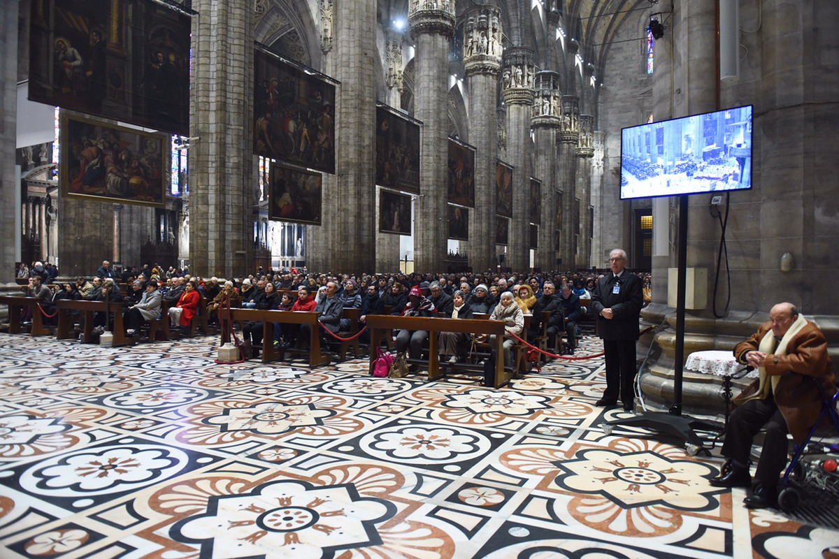 Nella Messa votiva dell’Immacolata Concezione della Beata Vergine Maria, che presiede in Duomo nel giorno della IV domenica dell’Avvento ambrosiano, l’Arcivescovo ‘parte’ dagli angeli che anche lui ha incontrato. «Angeli malati e anche angeli sani che curano i malati, angeli che andavano di fretta e angeli che, per muoversi, avevano bisogno di chi spingesse la carrozzina. Ma ho capito – dice il vescovo Mario – che erano angeli perché portavano tutti lo stesso messaggio, tutti parlavano più o meno come Gabriele, mandato da Dio a una giovane donna di Nazareth, tutti, infatti, dicevano: “Rallegrati”. Ecco il messaggio che, per ciascuno, fa riconoscere un angelo mandato da Dio».