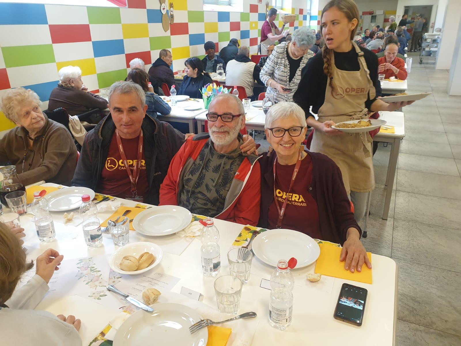 Nel centro diurno di via Boeri, i volontari dell’Opera hanno accolto gli ospiti con il consueto spirito di servizio, offrendo un pranzo curato nei minimi dettagli, reso possibile grazie al prezioso sostegno di Lidl Italia, partner storico della realtà milanese. Il menù ha celebrato la tradizione con sapori genuini: antipasto con affettati, uova sode, formaggi e insalata russa, ravioli di magro con crema di ricotta e peperoni, fettine di vitello con funghi e patate al forno, per concludere con colomba al cioccolato e caffè.