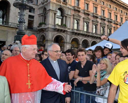 Durante la sua omelia il Cardinale Scola è voluto tornare sul concetto di verità della parola, già introdotto brevemente in piazza. «La parola vera è quella che ci fa capire chi sono e cosa sto facendo. Una parola che dentro l’azione mi dà un significato. Capisco che è vera perché mi offre una direzione solida e duratura. Avere fede significa stare appoggiati su una cosa solida, su una roccia che è Gesù, il verbo che si è fatto carne, che è incontrabile dentro la nostra amicizia cristiana. Gesù è la realtà e le parole sono vere solo quando raccontano la realtà». L’Arcivescovo ha infine voluto fare ai giovani alcune raccomandazioni riguardo l’oratorio che sta per iniziare. «Se vivete questo oratorio estivo, questa meravigliosa esperienza, in modo consapevole del senso e della direzione che è Gesù, allora vi farà crescere. La nostra vita ha senso solo se ci doniamo e nel donarci la nostra persona cresce».