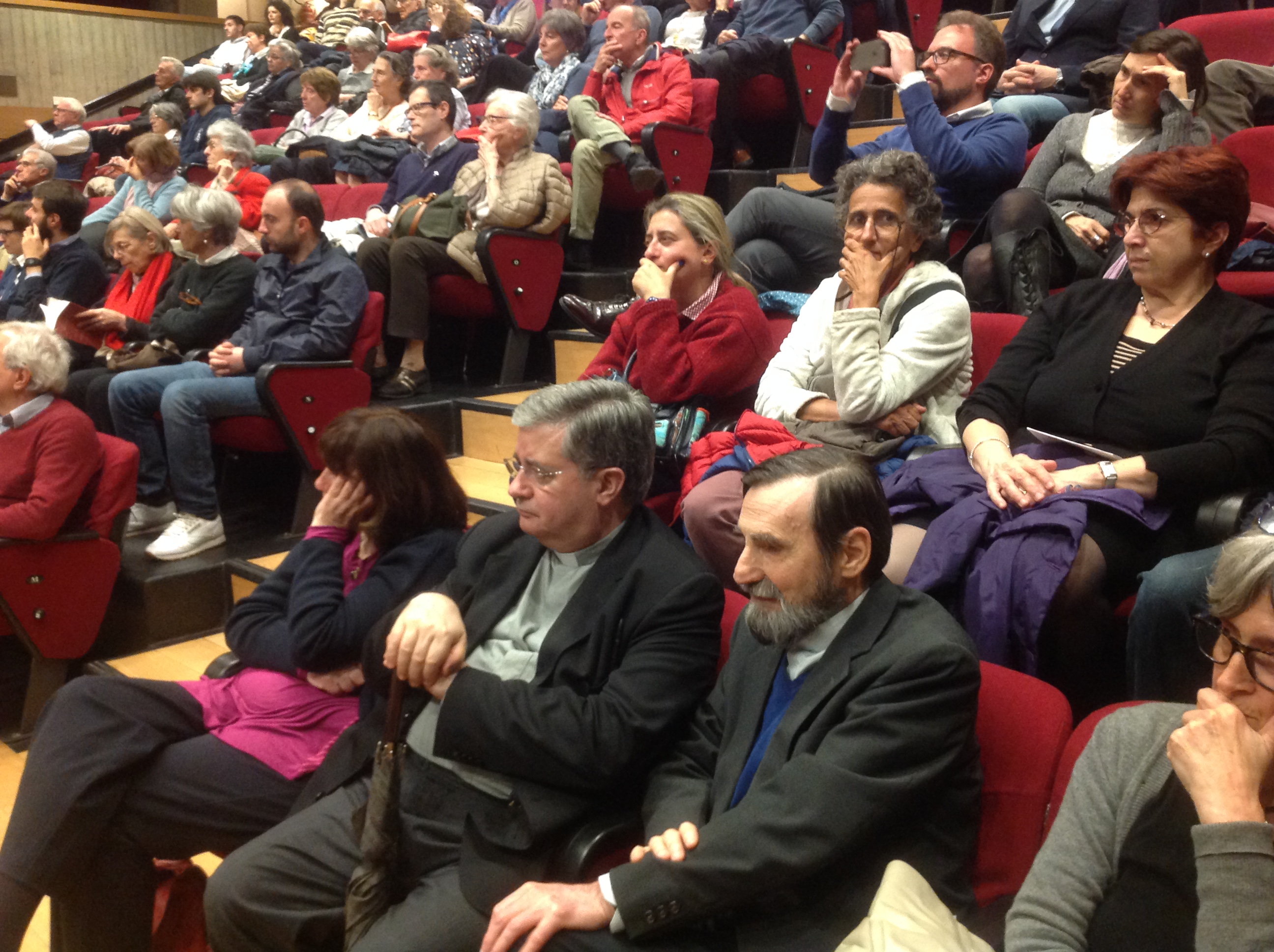 Lo ricorda con un sorriso padre Sosa, prima di prendere parte al momento di dialogo e confronto aperto dal presidente della Fondazione Carlo Maria Martini, padre Carlo Casalone S.J. Nelle prime file siedono anche il superiore provinciale d’Italia, Gianfranco Matarazzo, altri Padri gesuiti, la sorella del cardinale Martini, Maris e il nipote, Giovanni; personalità della società civile come il già sindaco di Milano Gabriele Albertini e Giuseppe Guzzetti presidente della Fondazione Cariplo, sostenitrice da sempre delle Celebrazioni e attività martiniane. Non mancano tanti amici, sacerdoti ambrosiani e studiosi.