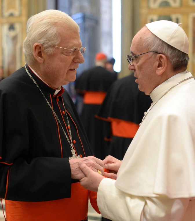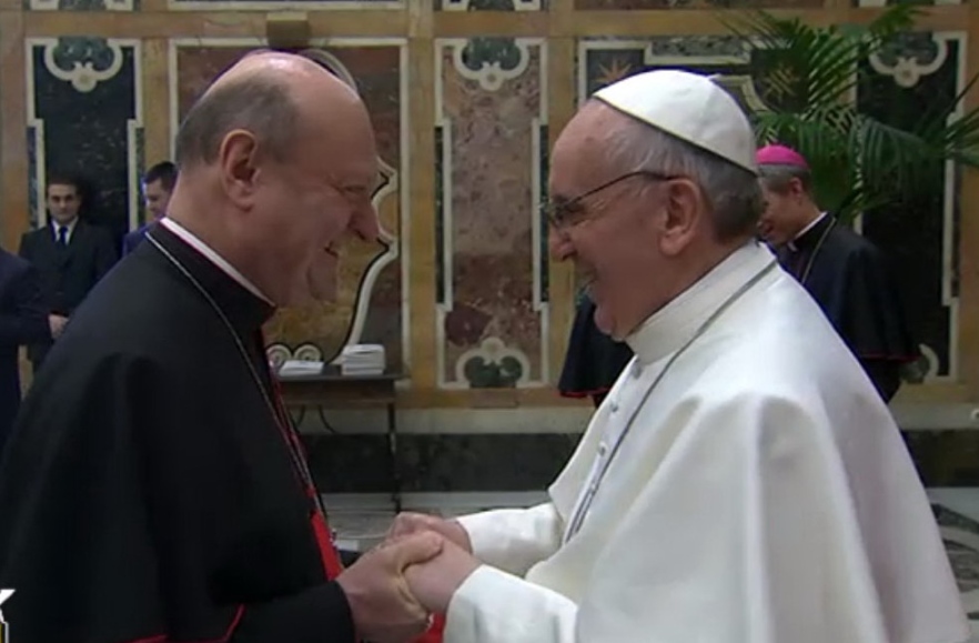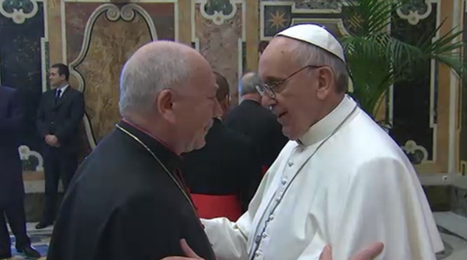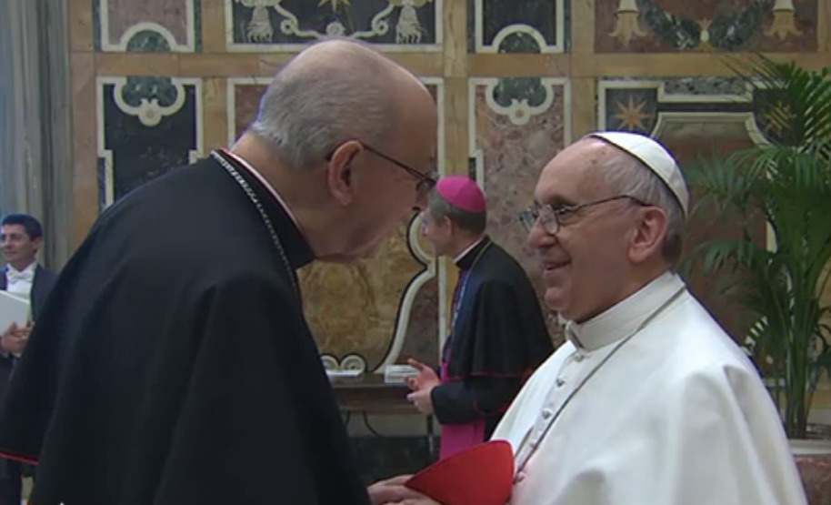 «Il mio pensiero va con particolare affetto ai venerati cardinali che, a causa dell’età o della malattia, hanno assicurato la loro partecipazione e il loro amore alla Chiesa attraverso l’offerta della sofferenza e della preghiera», ha proseguito il Papa, che ha poi interrotto il discorso scritto per informare i suoi fratelli del recentissimo infarto del cardinale Jorge María Mejia, la cui salute però pare «ancora stabile», tanto che il porporato «ha mandato un saluto a tutti». Il grazie del Papa si è poi esteso «a quanti, nelle diverse mansioni, si sono adoperati attivamente nella preparazione e nello svolgimento del Conclave, favorendo la sicurezza e la tranquillità dei cardinali in questo periodo così importante per la vita della Chiesa».