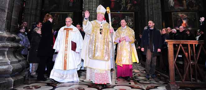 Citando infine il discorso dell’allora arcivescovo Montini all’Ispi nel 1962 e la sua aspirazione ad instaurare «un umanesimo-umano», Scola conclude il pontificale chiedendo a Maria «di donarci occhi semplici e un cuore grande nell’amare, per riconoscere, come fecero i Magi, i segni della Sua presenza» e incontrare il Bambino «nella vita della comunità cristiana» per riconoscere il dono della salvezza e «fare l’esaltante esperienza dell’unità dell’io, della famiglia, della comunità».
